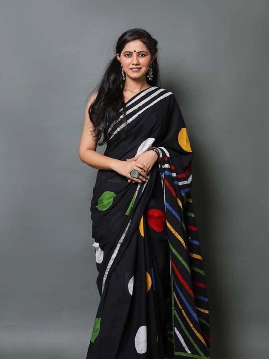 Fabric: Mulmul Cotton Pattern: Abstract Printed Saree Length: 5.5 meters Blouse Piece: 0.8 meters (Unstitched) Occasion: Casual, Festive, Ethnic Wear Features: Lightweight, Soft, Breathable, Easy to Drape Care Instructions: Gentle hand wash separately in cold water, do not bleach, dry in shade It comes with a 5.5-meter saree length and a 0.8-meter blouse piece, giving you the freedom to style it your way. Pair it with statement jewelry and elegant footwear to complete your look.