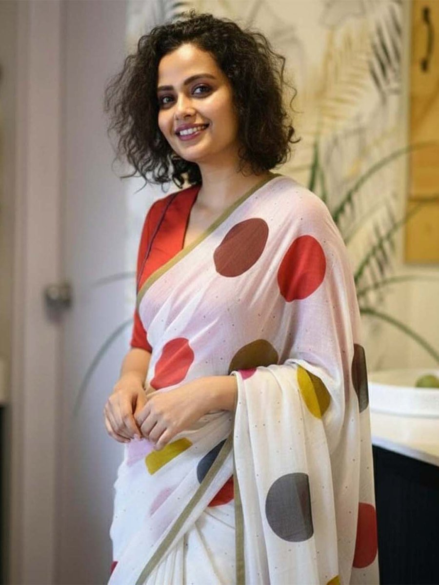 Fabric: Mulmul Cotton Pattern: Abstract Printed Saree Length: 5.5 meters Blouse Piece: 0.8 meters (Unstitched) Occasion: Casual, Festive, Ethnic Wear Features: Lightweight, Soft, Breathable, Easy to Drape Care Instructions: Gentle hand wash separately in cold water, do not bleach, dry in shade It comes with a 5.5-meter saree length and a 0.8-meter blouse piece, giving you the freedom to style it your way. Pair it with statement jewelry and elegant footwear to complete your look.