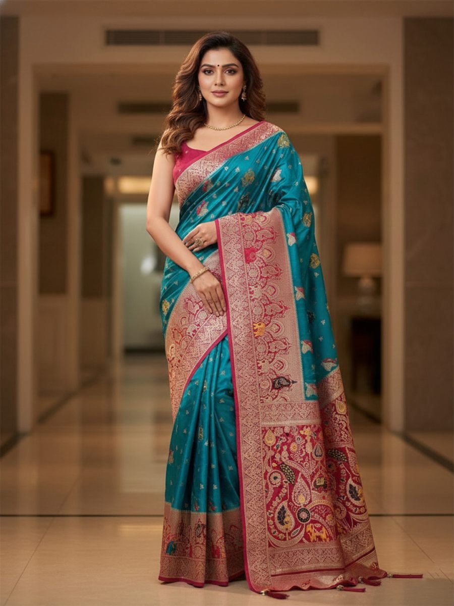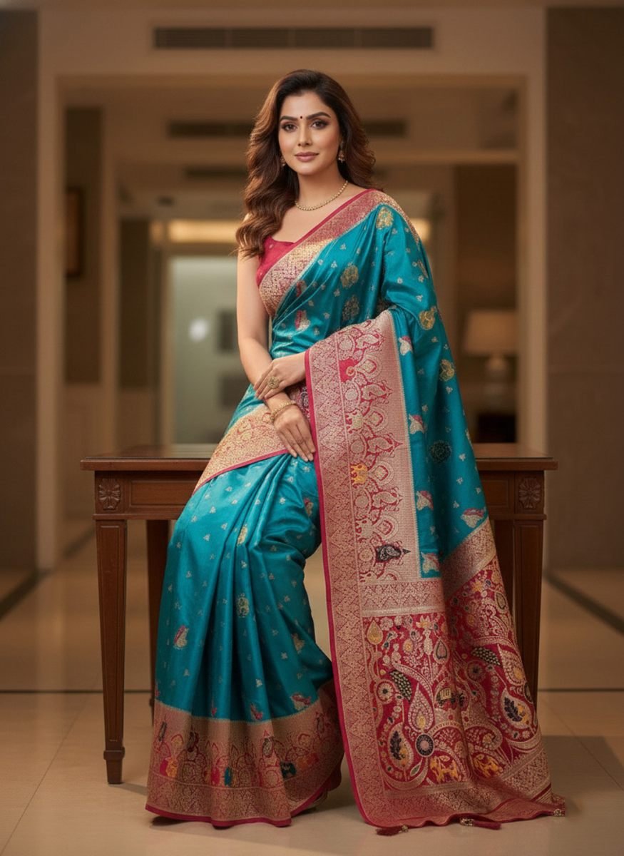 Key Features ; Fabric: Premium quality satin silk with a smooth, lustrous texture Type: Traditional Banarasi saree Work: Intricate woven zari detailing Look & Feel: Rich, elegant, and graceful drape Occasion: Perfect for weddings, festivals, parties, and traditional events Style: Classic ethnic design with a luxurious finish Blouse: Comes with a matching blouse pieceĀ Elevate your ethnic wardrobe with this luxurious Banarasi Satin Silk Saree, crafted to perfection with rich zari weaving. The smooth satin silk fabric offers a soft, glossy finish and graceful drape, while the intricate Banarasi weave reflects timeless Indian craftsmanship. Ideal for weddings, festive celebrations, and special occasions, this saree blends royal elegance with modern sophistication, making it a must-have for every saree lover.