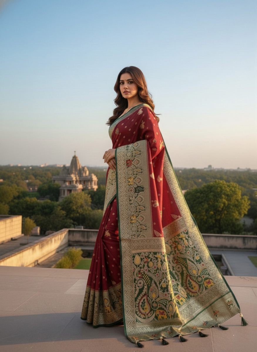 Key Features Fabric: Premium quality satin silk with a smooth, lustrous texture Type: Traditional Banarasi saree Work: Intricate woven zari detailing Look & Feel: Rich, elegant, and graceful drape Occasion: Perfect for weddings, festivals, parties, and traditional events Style: Classic ethnic design with a luxurious finish Blouse: Comes with a matching blouse pieceĀ Elevate your ethnic wardrobe with this luxurious Banarasi Satin Silk Saree, crafted to perfection with rich zari weaving. The smooth satin silk fabric offers a soft, glossy finish and graceful drape, while the intricate Banarasi weave reflects timeless Indian craftsmanship. Ideal for weddings, festive celebrations, and special occasions, this saree blends royal elegance with modern sophistication, making it a must-have for every saree lover.
