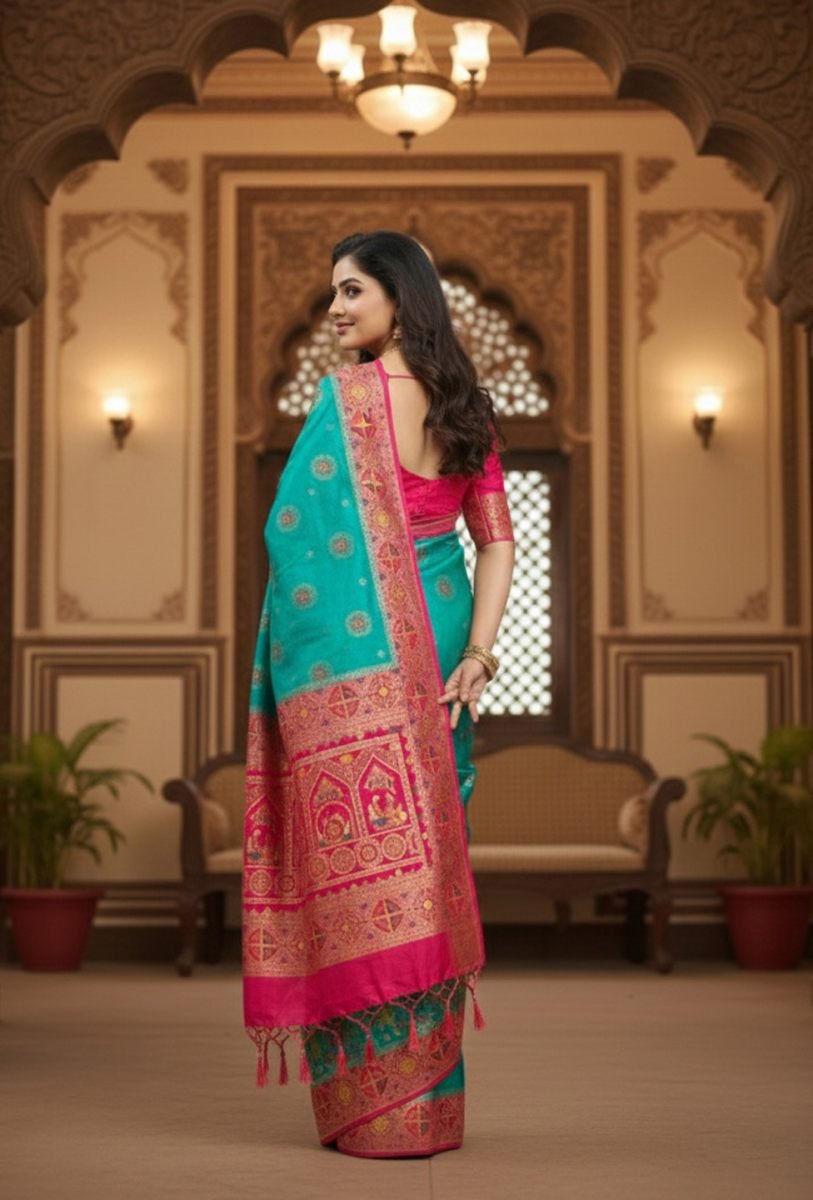Banarasi Woven Pure Satin Silk Saree with Rich Zari Work Contrast Pallu