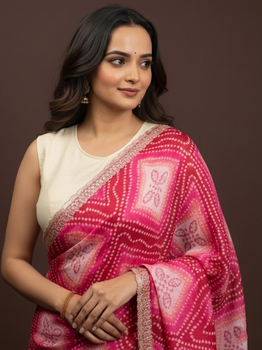 Bandhani Printed Chiffon Saree with Embroidered Border