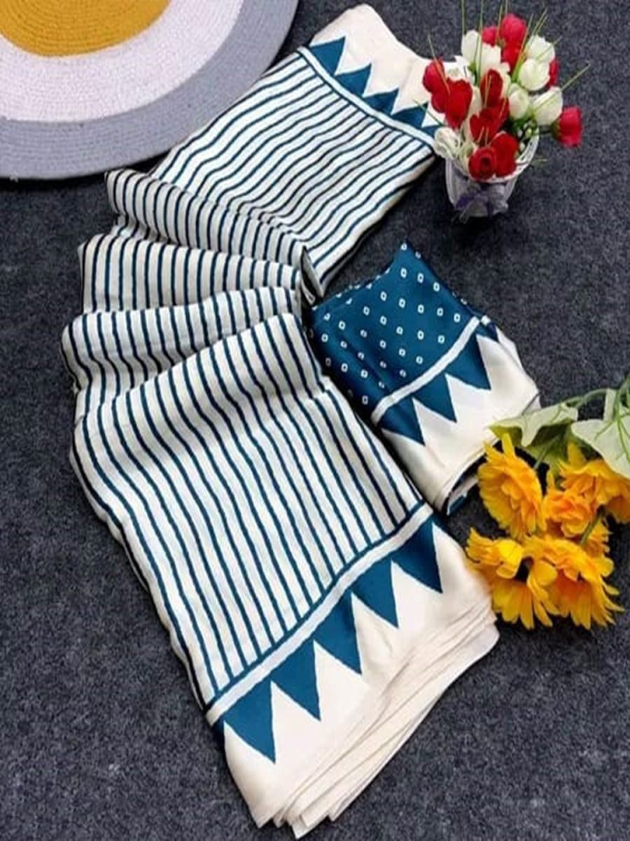 Crepe Silk Geometric Stripes Traditional Print Saree