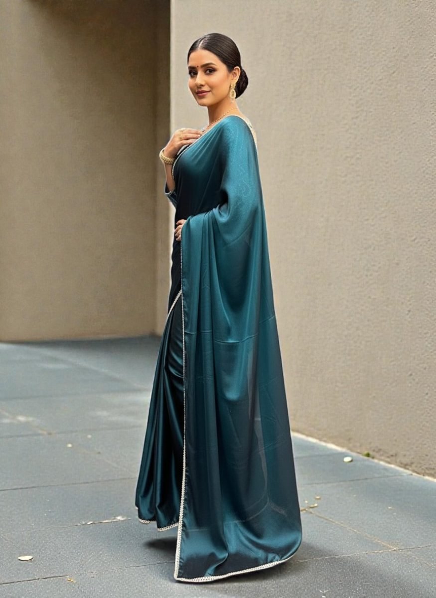 Fabric: Premium Rangoli Silk (Lightweight & High-Shine) Embellishment: Beautiful Mirror Lace Border Blouse: Readymade = 36 to 40 Occasion: Weddings, Parties, Festive Wear, and Evening Events Package Contains: 1 Saree with Unstitched Blouse Piece Make a stunning statement with this exquisite Rangoli Silk Saree. Crafted from premium Rangoli Silk, this saree offers a luxurious sheen and a soft, fluid drape that enhances your silhouette. The highlight of this piece is the intricate Mirror Lace Work along the borders, adding the perfect amount of sparkle for any evening event. To complete the look, the saree comes with a sophisticated Rayon Foil Print blouse that adds a modern, designer touch to the traditional ensemble. Whether it’s a wedding, a festive celebration, or a high-profile party, this saree is designed to make you stand out.