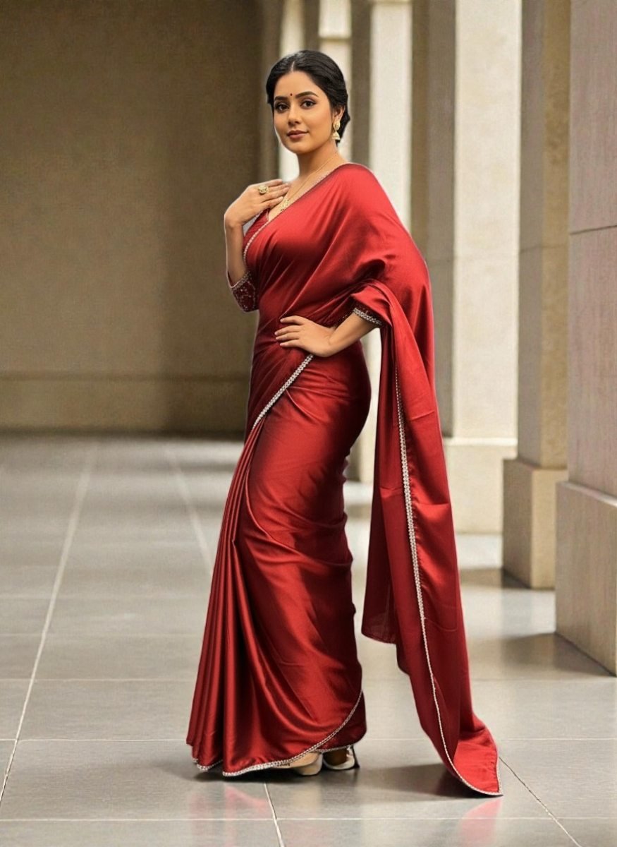 Fabric: Premium Rangoli Silk (Lightweight & High-Shine) Embellishment: Beautiful Mirror Lace Border Blouse: Readymade = 36 to 40 Occasion: Weddings, Parties, Festive Wear, and Evening Events Package Contains: 1 Saree with Unstitched Blouse Piece Make a stunning statement with this exquisite Rangoli Silk Saree. Crafted from premium Rangoli Silk, this saree offers a luxurious sheen and a soft, fluid drape that enhances your silhouette. The highlight of this piece is the intricate Mirror Lace Work along the borders, adding the perfect amount of sparkle for any evening event. To complete the look, the saree comes with a sophisticated Rayon Foil Print blouse that adds a modern, designer touch to the traditional ensemble. Whether it’s a wedding, a festive celebration, or a high-profile party, this saree is designed to make you stand out.
