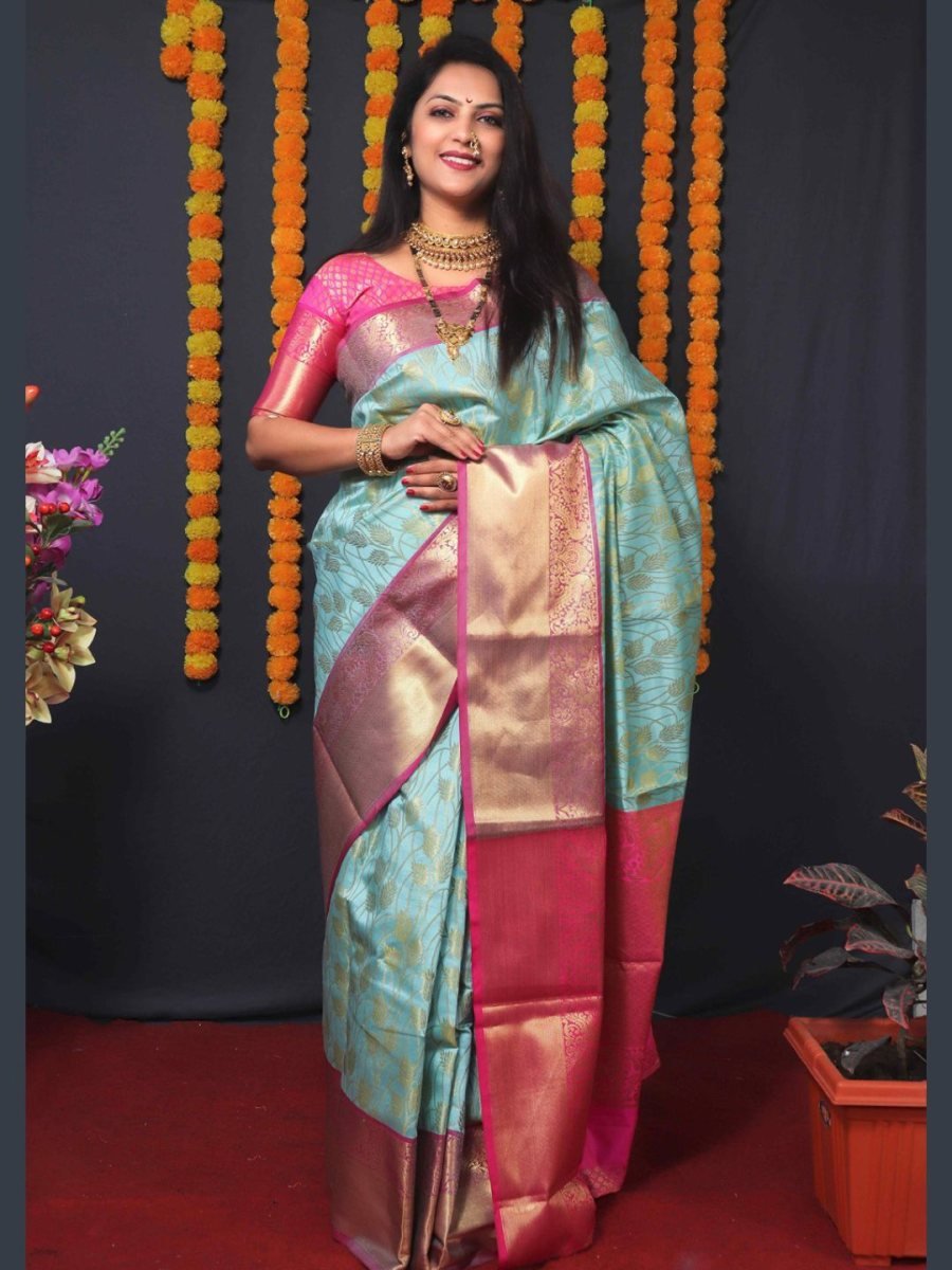 Fabric: Premium Kanjivaram Silk Design: Rich woven pallu with traditional patterns Saree Length: 5.5 meters Blouse Length: 0.8 meters (Unstitched) Occasion: Wedding, Party, Festive, Traditional, Cultural Events Style: Classic Indian Ethnic Wear Care Instructions: Dry clean recommended for longevity The saree comes with a 5.5-meter length ensuring a perfect drape, and an 0.8-meter unstitched blouse piece for a customized fit. Designed to reflect sophistication, the rich woven pallu enhances the overall grandeur, while the smooth silk body ensures comfort throughout the day.