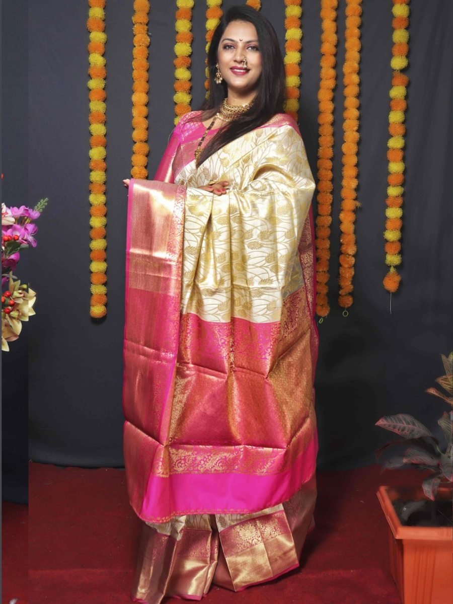 Fabric: Premium Kanjivaram Silk Design: Rich woven pallu with traditional patterns Saree Length: 5.5 meters Blouse Length: 0.8 meters (Unstitched) Occasion: Wedding, Party, Festive, Traditional, Cultural Events Style: Classic Indian Ethnic Wear Care Instructions: Dry clean recommended for longevity The saree comes with a 5.5-meter length ensuring a perfect drape, and an 0.8-meter unstitched blouse piece for a customized fit. Designed to reflect sophistication, the rich woven pallu enhances the overall grandeur, while the smooth silk body ensures comfort throughout the day.