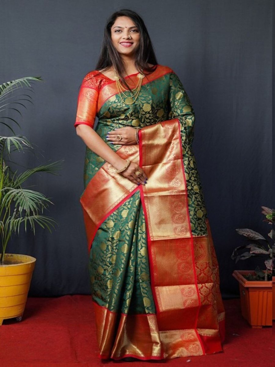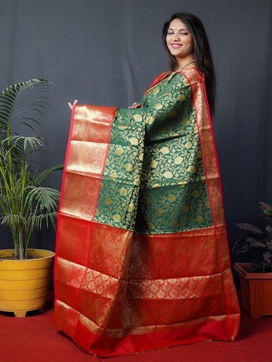 Kanjivaram Silk Saree with Rich Pallu with Unstitched Blouse Piece