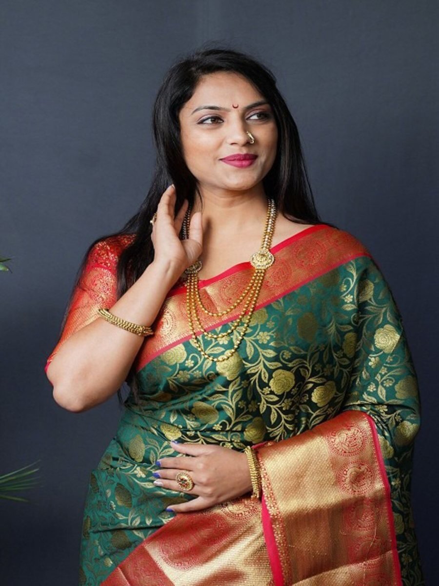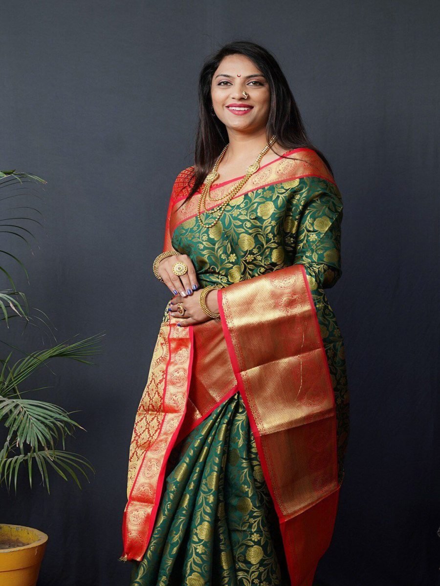 Fabric: Premium Kanjivaram Silk Design: Rich woven pallu with traditional patterns Saree Length: 5.5 meters Blouse Length: 0.8 meters (Unstitched) Occasion: Wedding, Party, Festive, Traditional, Cultural Events Style: Classic Indian Ethnic Wear Care Instructions: Dry clean recommended for longevity The saree comes with a 5.5-meter length ensuring a perfect drape, and an 0.8-meter unstitched blouse piece for a customized fit. Designed to reflect sophistication, the rich woven pallu enhances the overall grandeur, while the smooth silk body ensures comfort throughout the day.