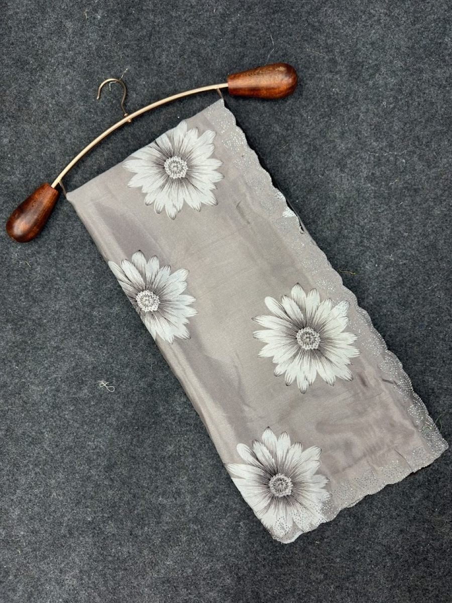 Elegant Printed Chinon Saree with Sparkling Siroksi Diamond Work Border