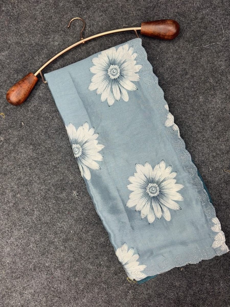 Elegant Printed Chinon Saree with Sparkling Siroksi Diamond Work Border