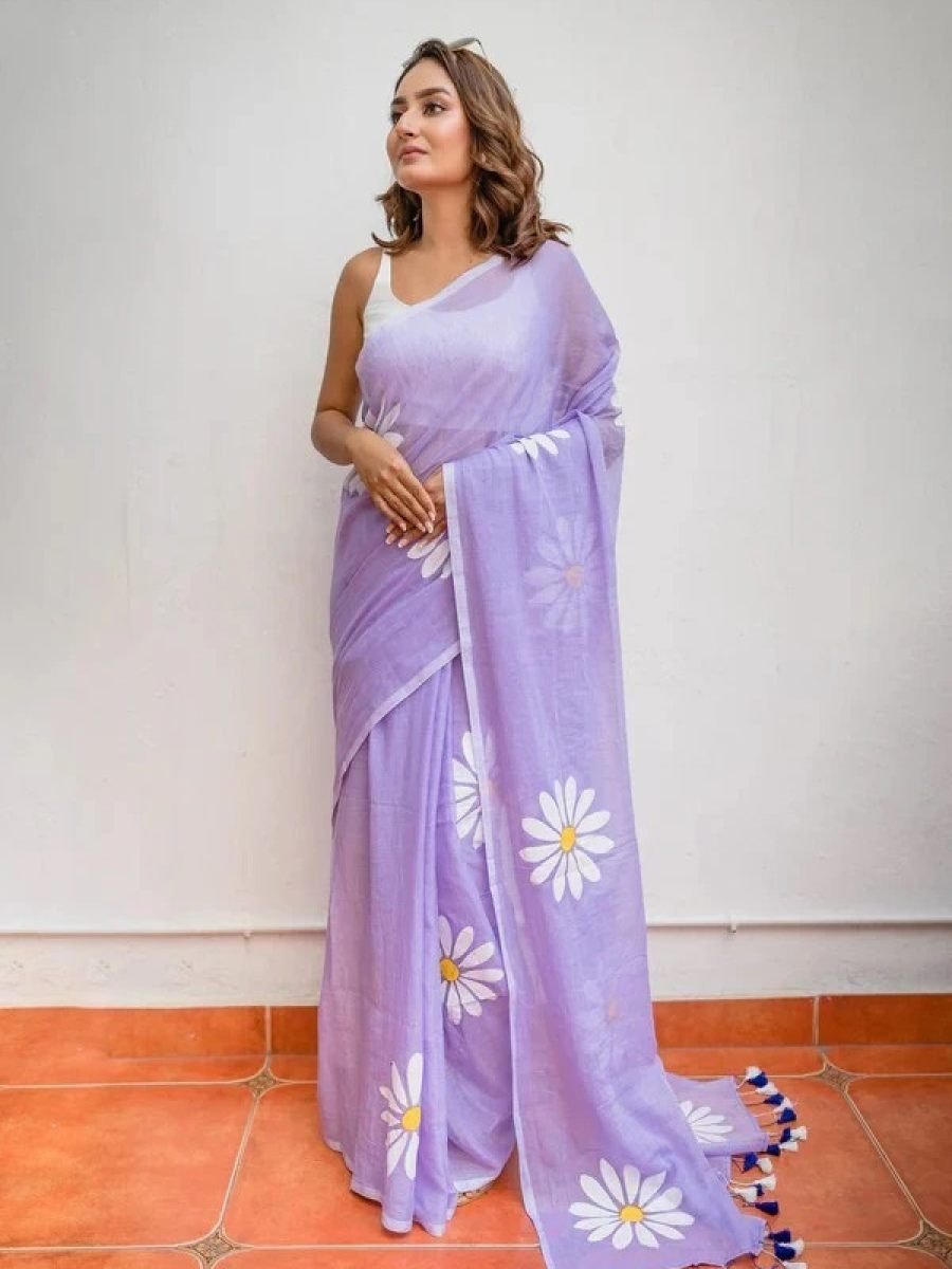 Fabric: Pure Cotton Handloom Design: Floral Print Saree Length: 5.5 meters Blouse Piece: 0.8 meters (Unstitched) Lightweight, breathable & skin-friendly Ideal for festive wear, office wear, and casual occasions Easy to drape & comfortable for all-day wear The saree comes with a 5.5 meter length for graceful draping and includes an unstitched blouse piece of 0.8 meters, giving you the freedom to style it as per your choice. Pure cotton fabric adds a natural shine, easy drape, and superior comfort, making this saree a must-have in your ethnic wardrobe. Pair it with traditional jewelry and elegant footwear to complete the look.