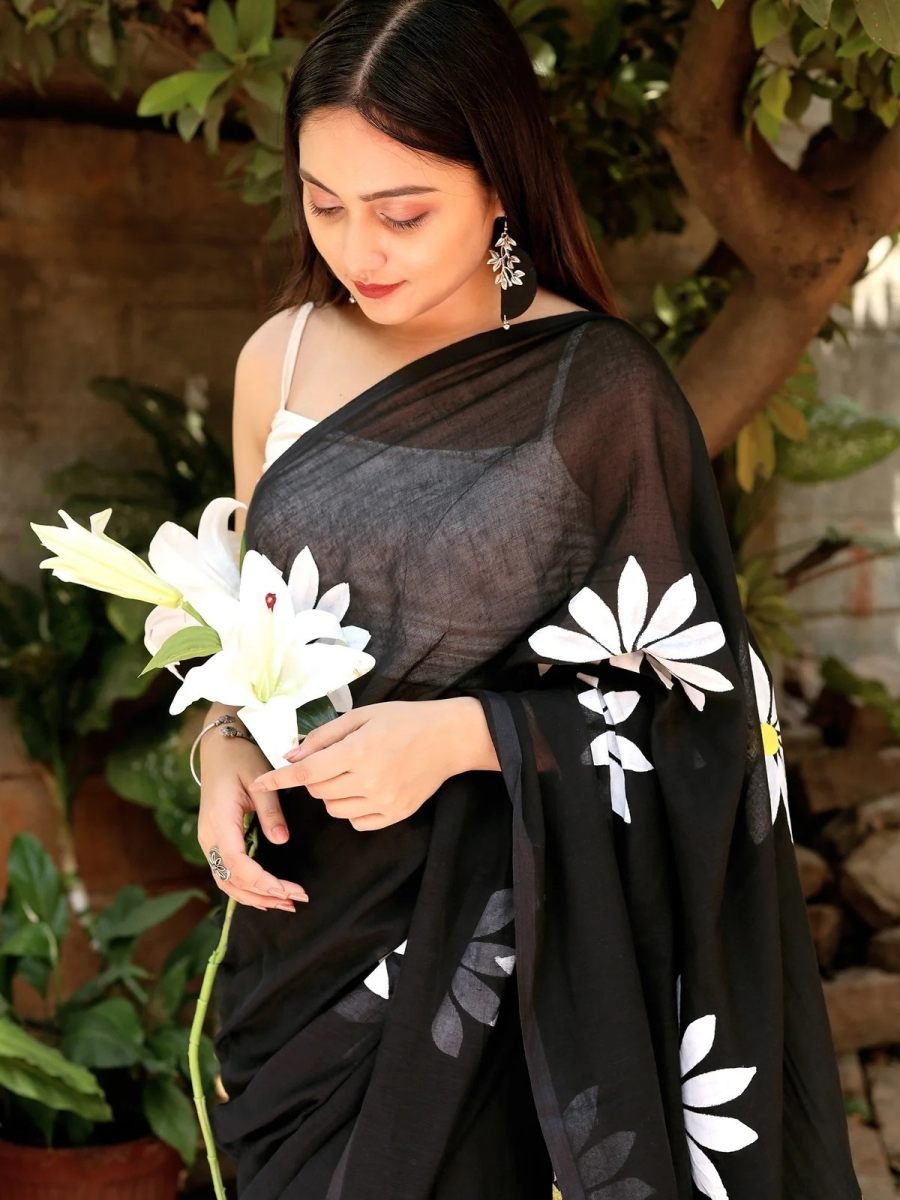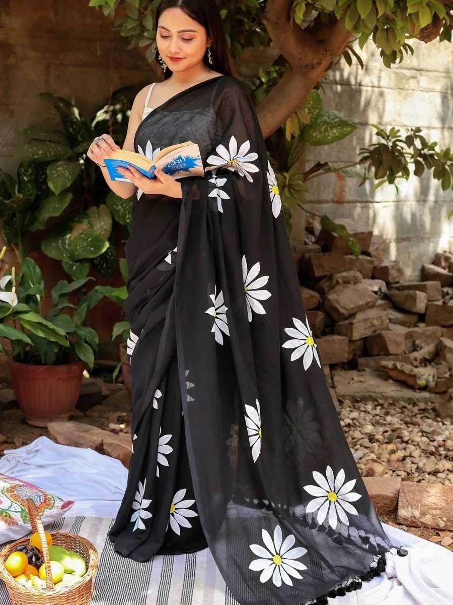 Fabric: Pure Cotton Handloom Design: Floral Print Saree Length: 5.5 meters Blouse Piece: 0.8 meters (Unstitched) Lightweight, breathable & skin-friendly Ideal for festive wear, office wear, and casual occasions Easy to drape & comfortable for all-day wear The saree comes with a 5.5 meter length for graceful draping and includes an unstitched blouse piece of 0.8 meters, giving you the freedom to style it as per your choice. Pure cotton fabric adds a natural shine, easy drape, and superior comfort, making this saree a must-have in your ethnic wardrobe. Pair it with traditional jewelry and elegant footwear to complete the look.
