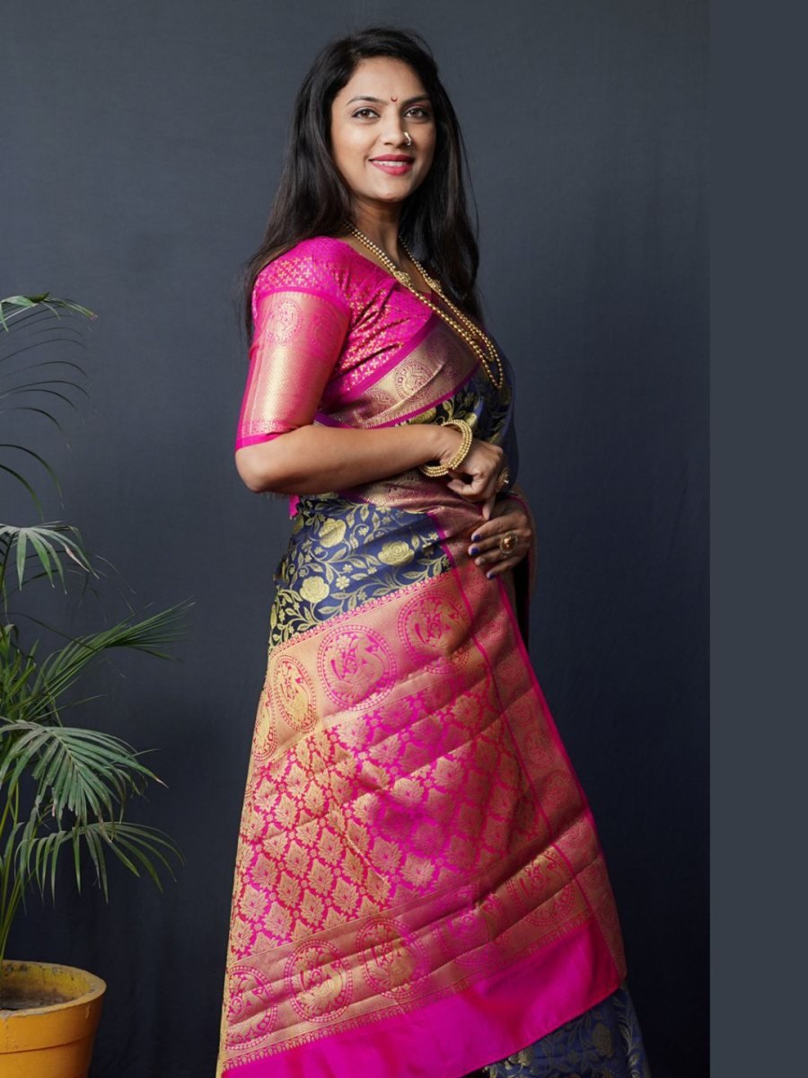 Fabric: Premium Kanjivaram Silk Design: Rich woven pallu with traditional patterns Saree Length: 5.5 meters Blouse Length: 0.8 meters (Unstitched) Occasion: Wedding, Party, Festive, Traditional, Cultural Events Style: Classic Indian Ethnic Wear Care Instructions: Dry clean recommended for longevity The saree comes with a 5.5-meter length ensuring a perfect drape, and an 0.8-meter unstitched blouse piece for a customized fit. Designed to reflect sophistication, the rich woven pallu enhances the overall grandeur, while the smooth silk body ensures comfort throughout the day.
