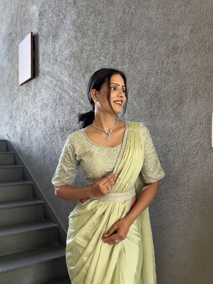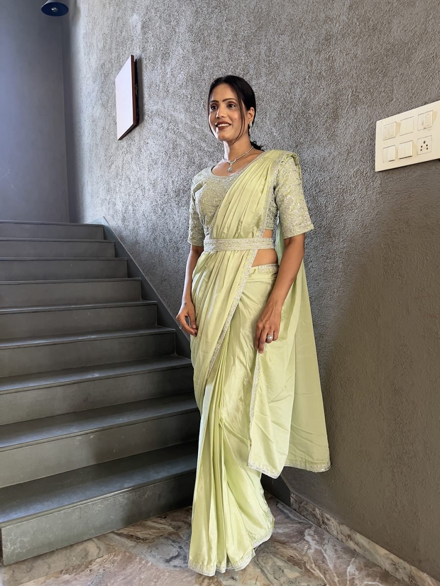 Ready To Wear Chinon Embroidery Work Saree With Stitched Blouse