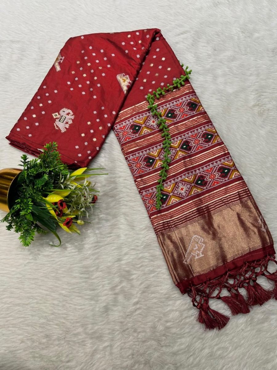Red Cotton Silk Saree with Traditional Patola Print and Tassel Border Pallu