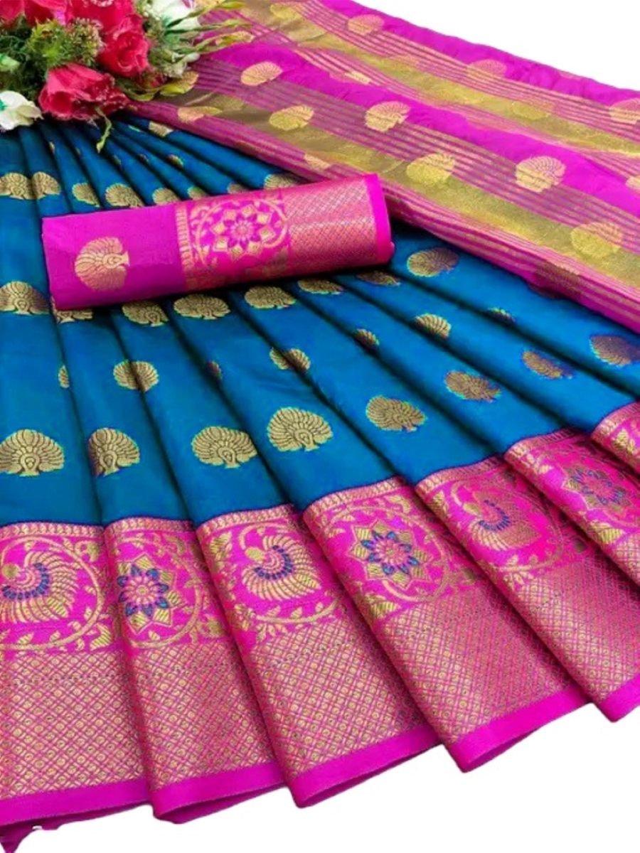 Sky Cotton Silk Banarasi Saree with Zari Woven Jacquard for Festive Wear