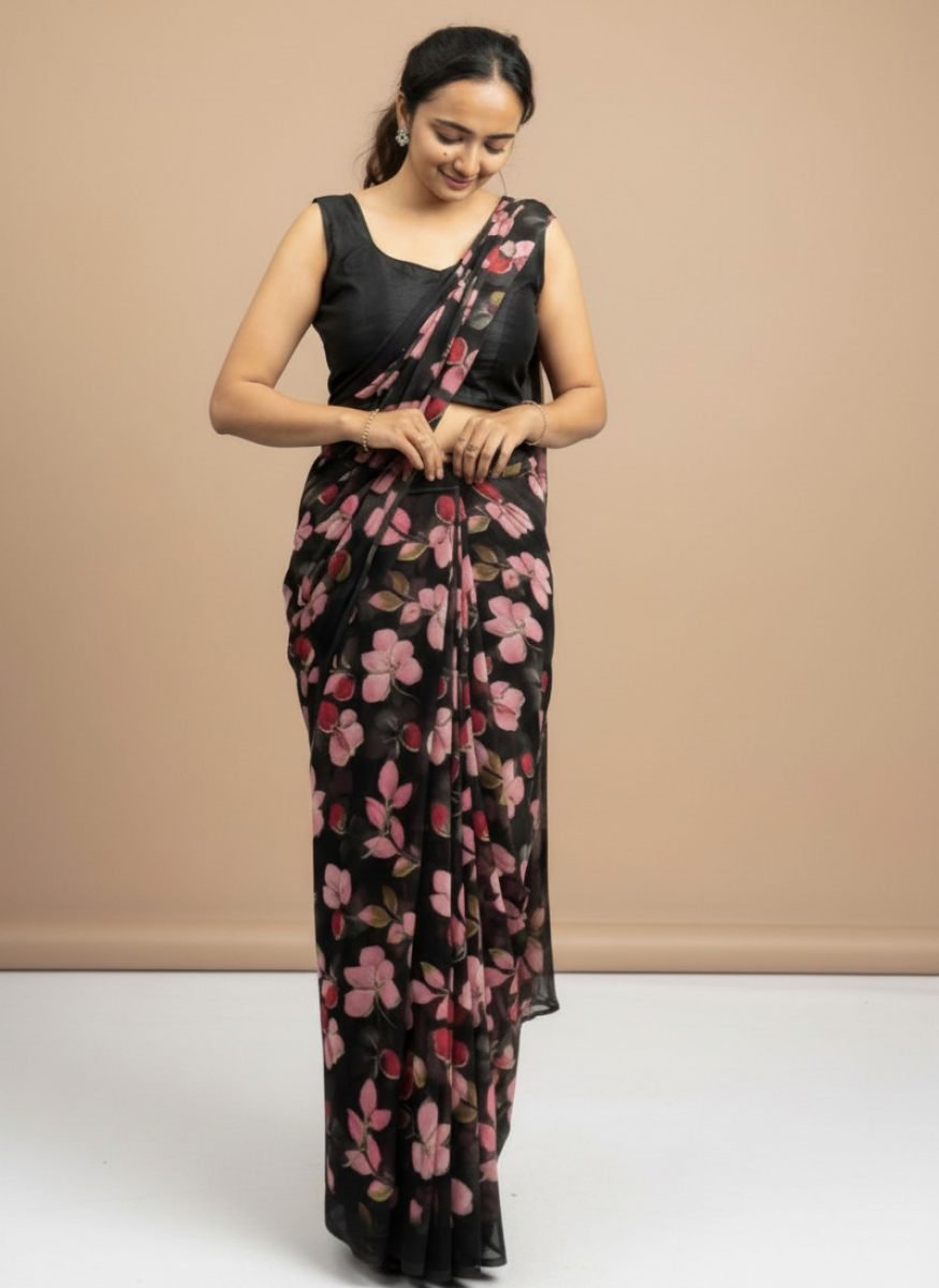 Vibrant Floral Print Georgette Ready to Wear Saree