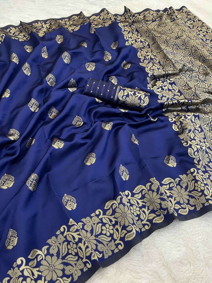 Fabric (Saree): Pure Silk Work/Design: Woven Banarasi Jacquard Design Saree Length: 5.5 Meters Blouse Piece Length: 0.8 Meters (Unstitched) Texture: Smooth, lustrous, lightweight drape Occasion: Wedding, Festival, Party, Traditional, Cultural Events Style Tip: Pair with gold jewelry and embellished clutch for a regal look Wash Care: Dry Clean Only Indulge in timeless elegance with this Woven Banarasi Jacquard Pure Silk Saree, crafted to perfection for the modern woman who loves tradition with a touch of luxury. Designed with rich Banarasi weaving and intricate jacquard patterns, this saree is a true masterpiece that reflects the heritage of Indian handloom artistry. The smooth texture of pure silk ensures a graceful drape, while the luminous sheen enhances its royal charm.