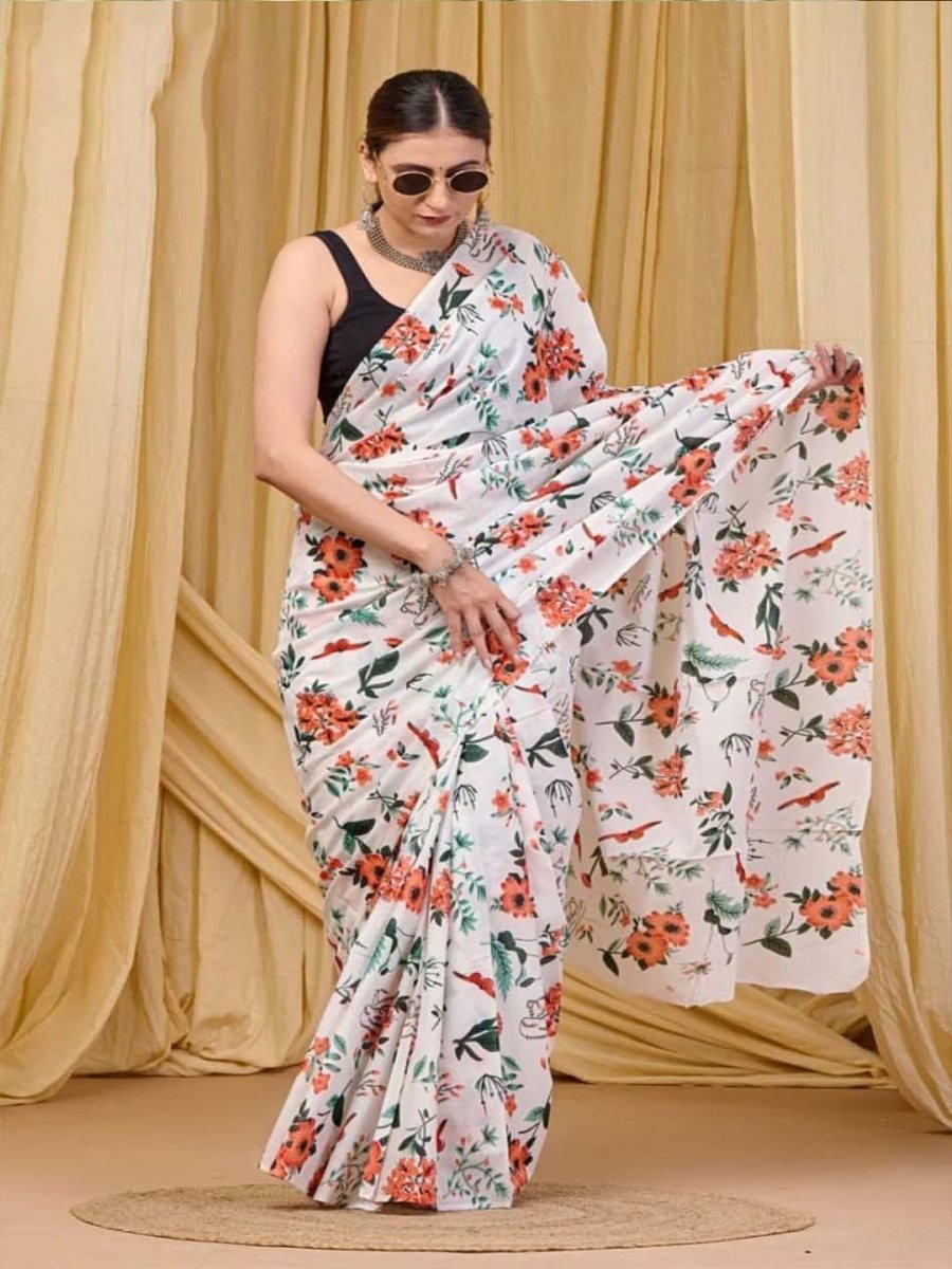 Fabric: Mulmul Cotton Pattern: Abstract Printed Saree Length: 5.5 meters Blouse Piece: 0.8 meters (Unstitched) Occasion: Casual, Festive, Ethnic Wear Features: Lightweight, Soft, Breathable, Easy to Drape Care Instructions: Gentle hand wash separately in cold water, do not bleach, dry in shade It comes with a 5.5-meter saree length and a 0.8-meter blouse piece, giving you the freedom to style it your way. Pair it with statement jewelry and elegant footwear to complete your look.