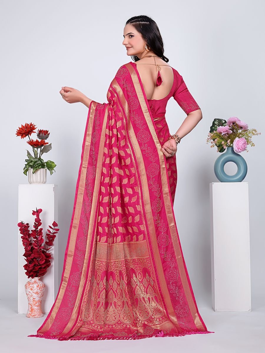 Fabric: Georgette * Design: Jacquard Rich Pallu With Embroidered * Saree Length: 5.5 meters * Blouse Length: 0.8 meters * Product Description: Embrace timeless grace and regal charm with this stunning Banarasi Georgette Ready-to-Wear Saree adorned with exquisite Siroski work. Designed for the modern woman who appreciates the elegance of tradition, this saree is a perfect blend of heritage craftsmanship and contemporary convenience. Whether it’s a festive celebration, a wedding function, or a grand evening event, this saree promises to make you stand out with its captivating beauty and effortless drape. Key Features: Fabric: Premium Banarasi Georgette Work: Siroski Stone Embellishment Includes: Saree with Matching Blouse Piece Ideal For: Weddings, Festive Occasions, Parties Care: Dry Clean Only