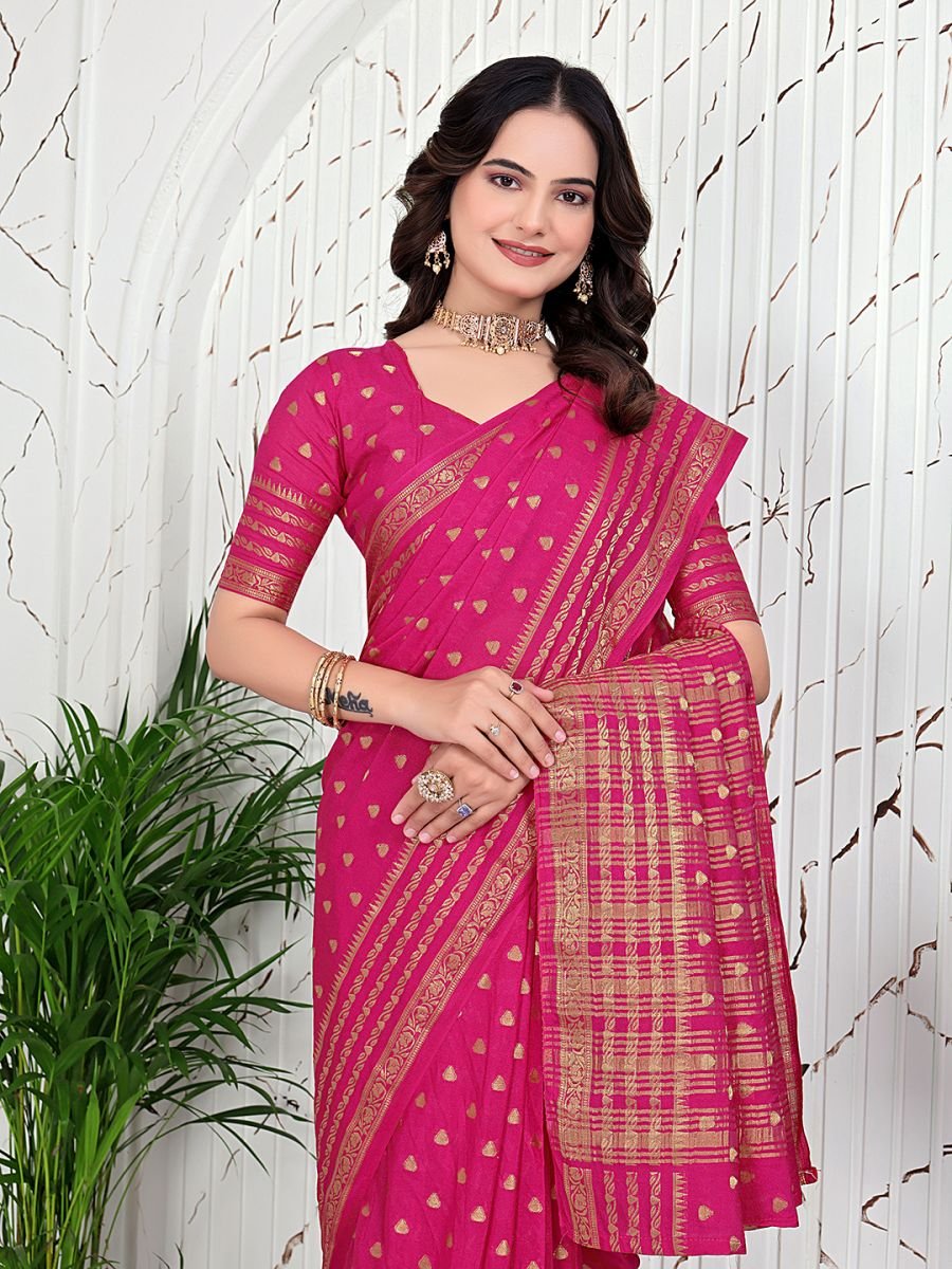 Saree Fabric: Crepe Blouse Fabric: Matching Unstitched Crepe Work: All-over Banarasi Jacquard Weave Type: Ready-to-Wear (Pre-pleated) Saree Length: 5.5 Meters Blouse Length: 0.8 Meters Pack Contains: 1 Ready-to-Wear Saree, 1 Unstitched Blouse Piece Wash Care: Dry Clean Only (to preserve the Jacquard weave and fabric texture). The Convenience: One-Minute Glamour This "ready-to-wear" marvel comes pre-pleated, allowing you to slip into it as easily as a skirt. You get a perfect, even drape every single time, ensuring you look polished and put-together for any high-profile event. Step into any celebration like royalty with our Ready-to-Wear Banarasi Jacquard Crepe Saree. This is where timeless tradition meets modern-day convenience.
