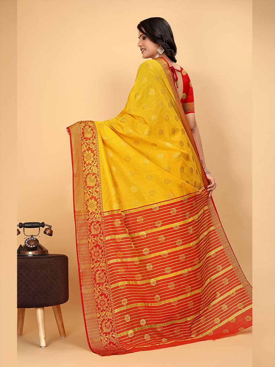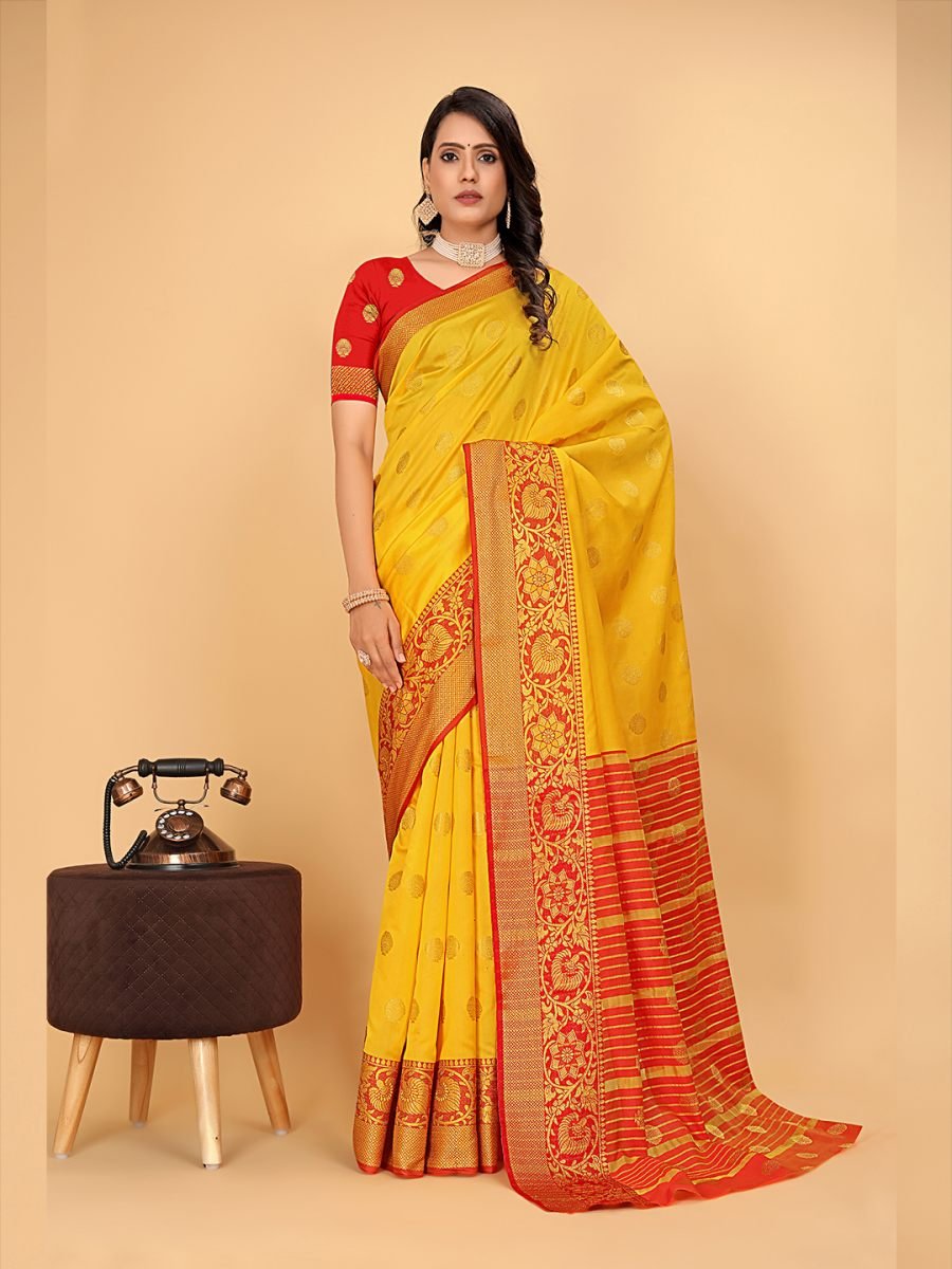 Banarasi Softy Copper Zari Cotton Silk Yellow Saree