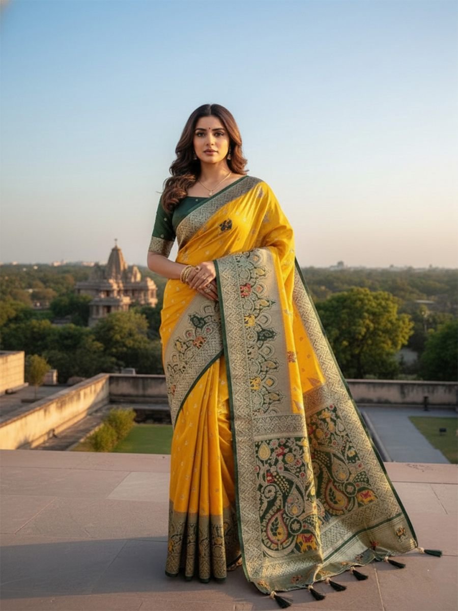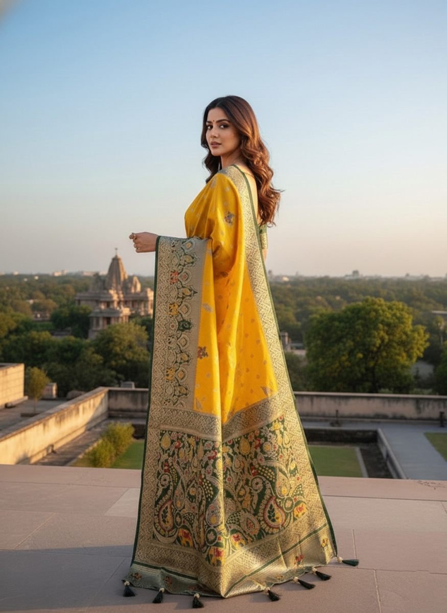 Key Features ; Fabric: Premium quality satin silk with a smooth, lustrous texture Type: Traditional Banarasi saree Work: Intricate woven zari detailing Look & Feel: Rich, elegant, and graceful drape Occasion: Perfect for weddings, festivals, parties, and traditional events Style: Classic ethnic design with a luxurious finish Blouse: Comes with a matching blouse pieceĀ Elevate your ethnic wardrobe with this luxurious Banarasi Satin Silk Saree, crafted to perfection with rich zari weaving. The smooth satin silk fabric offers a soft, glossy finish and graceful drape, while the intricate Banarasi weave reflects timeless Indian craftsmanship. Ideal for weddings, festive celebrations, and special occasions, this saree blends royal elegance with modern sophistication, making it a must-have for every saree lover.