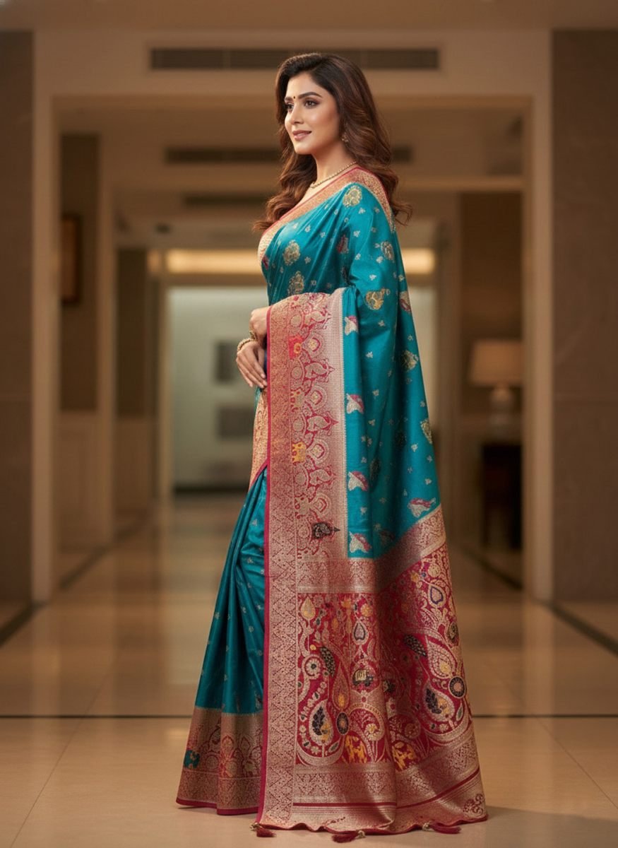 Key Features ; Fabric: Premium quality satin silk with a smooth, lustrous texture Type: Traditional Banarasi saree Work: Intricate woven zari detailing Look & Feel: Rich, elegant, and graceful drape Occasion: Perfect for weddings, festivals, parties, and traditional events Style: Classic ethnic design with a luxurious finish Blouse: Comes with a matching blouse pieceĀ Elevate your ethnic wardrobe with this luxurious Banarasi Satin Silk Saree, crafted to perfection with rich zari weaving. The smooth satin silk fabric offers a soft, glossy finish and graceful drape, while the intricate Banarasi weave reflects timeless Indian craftsmanship. Ideal for weddings, festive celebrations, and special occasions, this saree blends royal elegance with modern sophistication, making it a must-have for every saree lover.