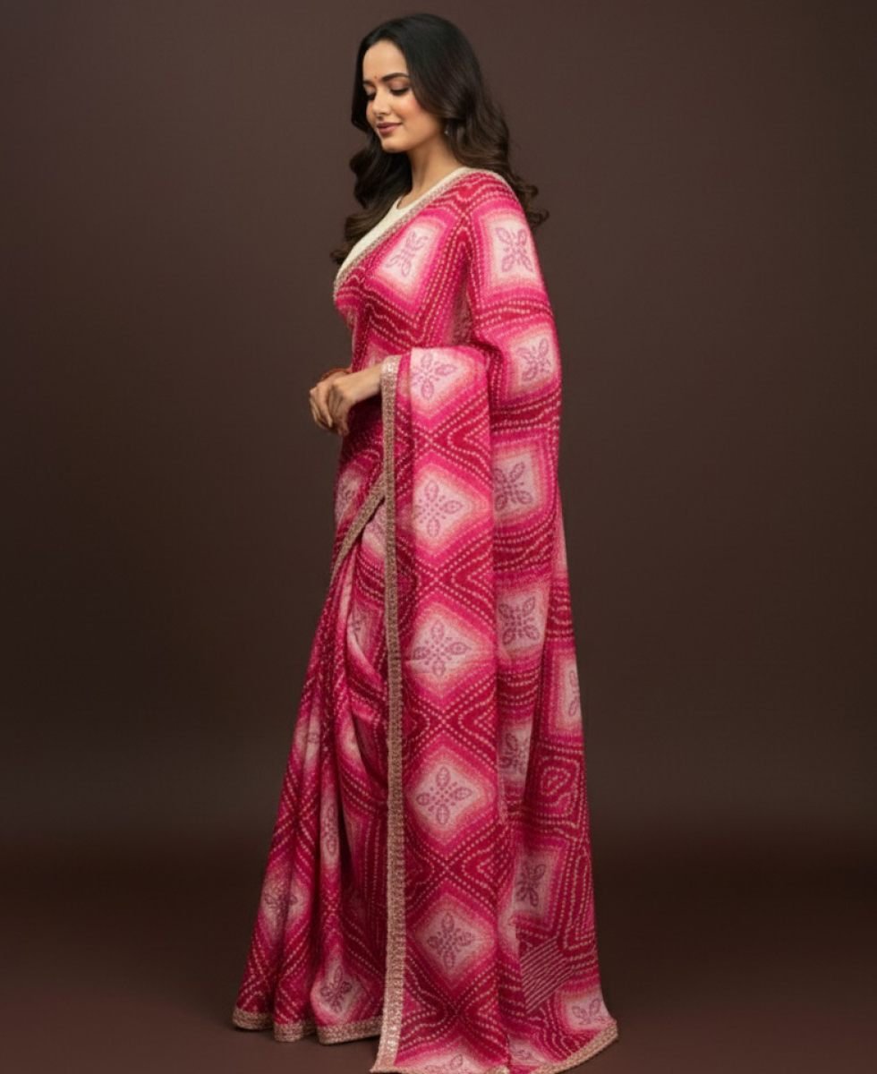 Bandhani Printed Chiffon Saree with Embroidered Border