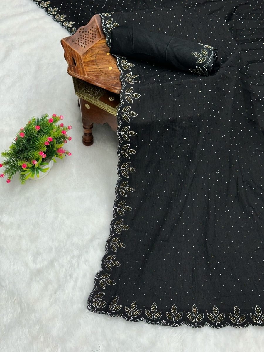 Chinon Crush Silk Saree with Siroski Diamond Work