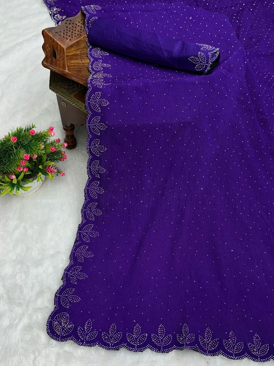 Chinon Crush Silk Saree with Siroski Diamond Work
