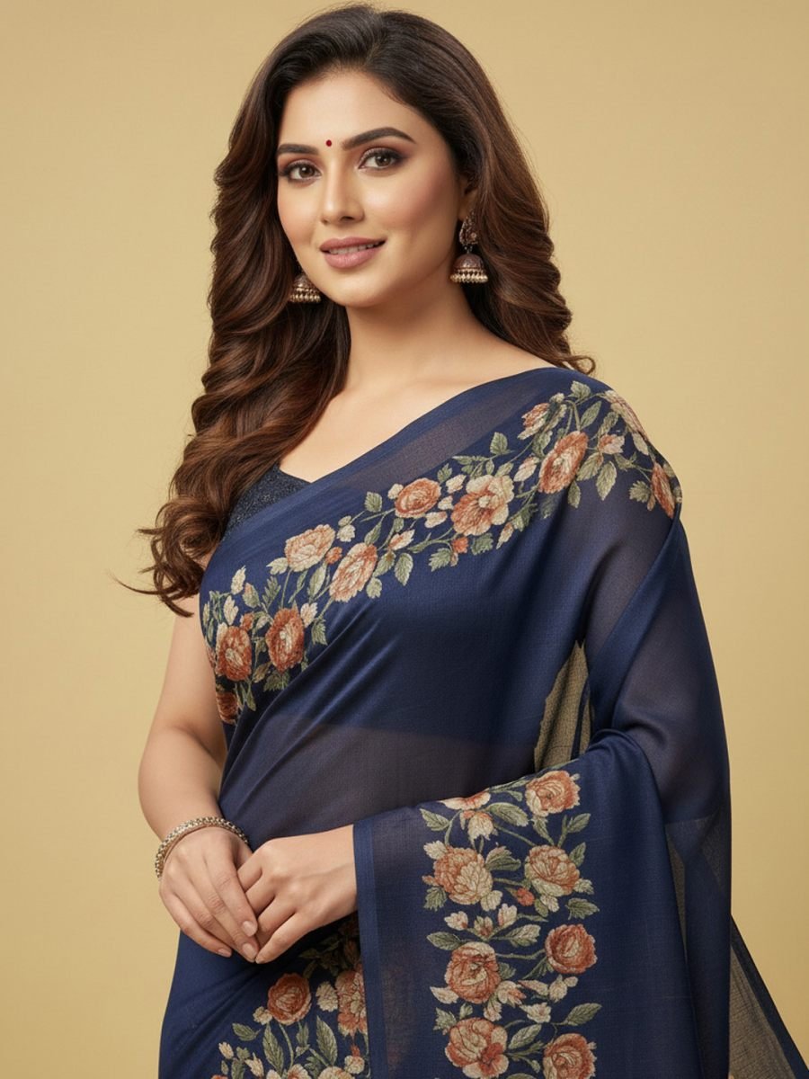 Saree Fabric: Premium Georgette Blouse Fabric: Matching Georgette Saree Length: 5.5 Meters Blouse Length: 0.8 Meters (Unstitched) Work/Pattern: Digital Floral Print on Border Style: Casual Wear, Daily Wear, Office Wear, Festive Wear Wash Care: Gentle hand wash or dry clean for best results. Avoid direct sunlight when drying. Package Contains: 1 Saree with 1 attached Unstitched Blouse Piece Step into a world of timeless elegance and contemporary style with our beautiful Border Floral Print Georgette Saree. Versatility Occasion: From a busy day at the office to a relaxed kitty party or a festive family gathering, this saree is your perfect companion. Its understated yet chic appeal makes it suitable for a wide range of occasions. Pair it with minimalistic jewelry for a professional look or with statement pieces for a more celebratory feel.