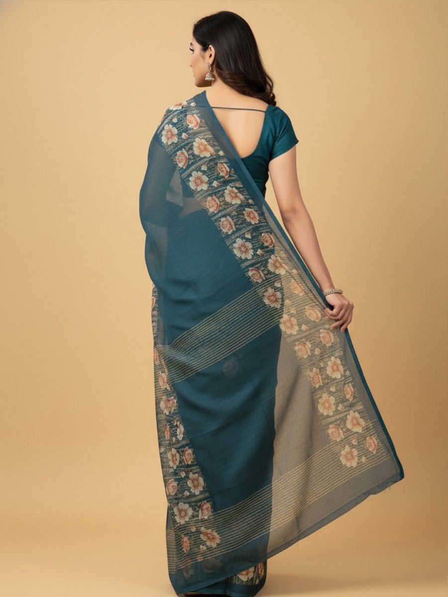 Saree Fabric: Premium Georgette Blouse Fabric: Matching Georgette Saree Length: 5.5 Meters Blouse Length: 0.8 Meters (Unstitched) Work/Pattern: Digital Floral Print on Border Style: Casual Wear, Daily Wear, Office Wear, Festive Wear Wash Care: Gentle hand wash or dry clean for best results. Avoid direct sunlight when drying. Package Contains: 1 Saree with 1 attached Unstitched Blouse Piece Step into a world of timeless elegance and contemporary style with our beautiful Border Floral Print Georgette Saree. Versatility Occasion: From a busy day at the office to a relaxed kitty party or a festive family gathering, this saree is your perfect companion. Its understated yet chic appeal makes it suitable for a wide range of occasions. Pair it with minimalistic jewelry for a professional look or with statement pieces for a more celebratory feel.