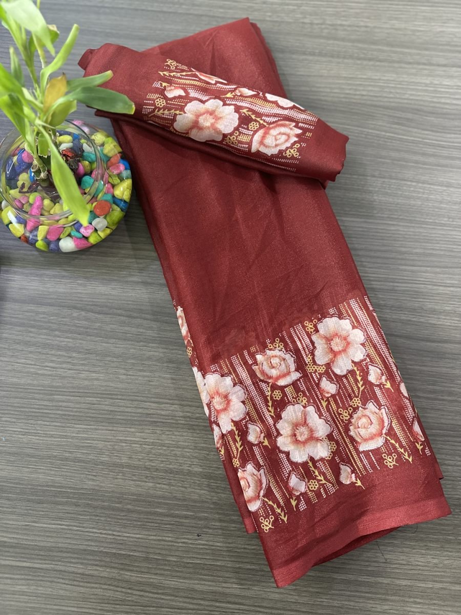 Saree Fabric: Premium Georgette Blouse Fabric: Matching Georgette Saree Length: 5.5 Meters Blouse Length: 0.8 Meters (Unstitched) Work/Pattern: Digital Floral Print on Border Style: Casual Wear, Daily Wear, Office Wear, Festive Wear Wash Care: Gentle hand wash or dry clean for best results. Avoid direct sunlight when drying. Package Contains: 1 Saree with 1 attached Unstitched Blouse Piece Step into a world of timeless elegance and contemporary style with our beautiful Border Floral Print Georgette Saree. Versatility Occasion: From a busy day at the office to a relaxed kitty party or a festive family gathering, this saree is your perfect companion. Its understated yet chic appeal makes it suitable for a wide range of occasions. Pair it with minimalistic jewelry for a professional look or with statement pieces for a more celebratory feel.