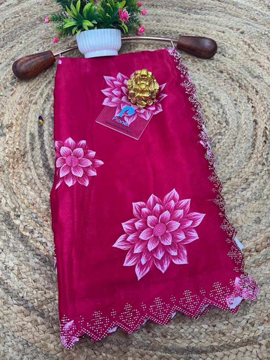 Printed Chinon Saree with Sparkling Siroksi Diamond Work Border