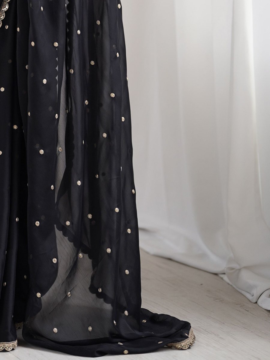 Premium Rangoli Silk Fabric Crafted from high-quality Rangoli silk that offers a smooth texture, soft feel, and graceful fall, ensuring both comfort and an elegant drape throughout the day. Elegant Sequin Butti Work Finely placed sequin butti work spread evenly across the saree adds a subtle shimmer, enhancing the overall look without appearing heavy or flashy. Designer Lace Border Finish A beautifully finished lace border adds a refined and decorative touch, elevating the saree’s traditional appeal and making it suitable for special occasions. Lightweight & Easy to Drape The fabric is lightweight and breathable, making it easy to carry for long hours while maintaining a neat and stylish appearance. Festive & Party Wear Ready Perfectly suited for festive celebrations, parties, weddings, family functions, and traditional events. Unstitched Matching Blouse Piece Comes with a coordinated unstitched blouse piece, allowing customization according to personal style and fitting preferences. Standard Saree Length A saree length of 5.5 meters provides a classic drape, paired with a 0.8-meter blouse piece for complete ethnic wear. Product Description Rangoli silk saree designed for timeless elegance and comfort. Made from premium Rangoli silk fabric, this saree offers a smooth texture with a graceful drape. The saree is adorned with subtle sequin butti work evenly spread across the body, adding a refined shimmer. A beautifully detailed lace border enhances the overall look, making it a perfect choice for festive occasions, parties, and celebrations. Pair it with traditional jewelry for a sophisticated and elegant appearance.