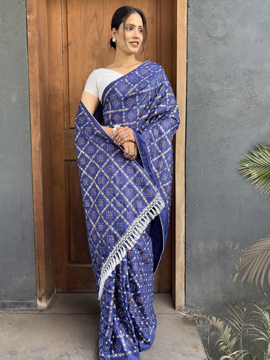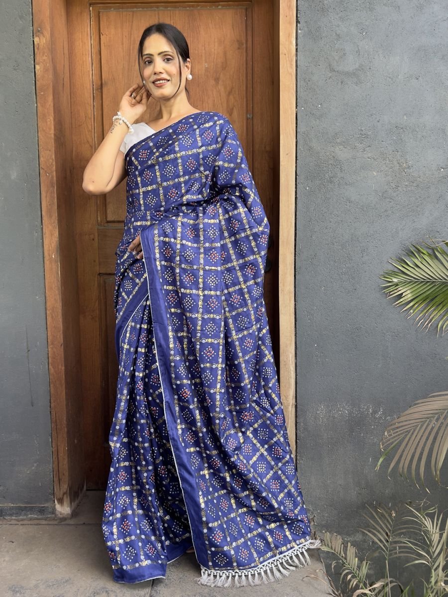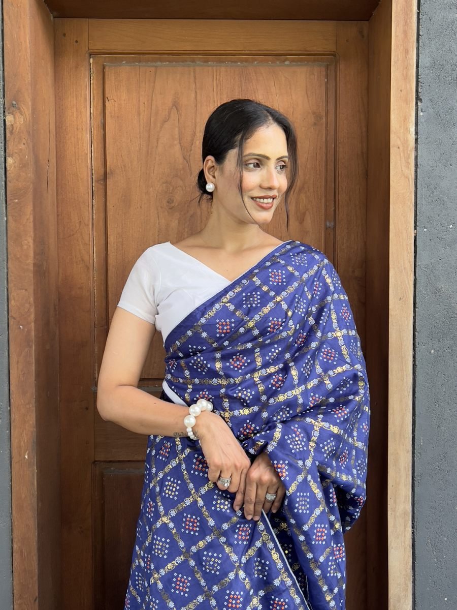 Fabric: Silk Blend Work/Design: Bandhani-inspired floral print Saree Length: 5.5 meters Blouse Piece Length: 0.8 meters (Unstitched) Occasion: Wedding, Festive, Party, Traditional Wear Style: Ethnic, Elegant, Lightweight & Comfortable Care Instructions: Dry Clean or Gentle Hand Wash The vibrant Bandhani-inspired floral prints bring a touch of Rajasthan’s rich heritage, while the soft silk blend fabric ensures comfort for long wear. Whether it’s a festive celebration, wedding function, or party, this saree makes you stand out effortlessly.