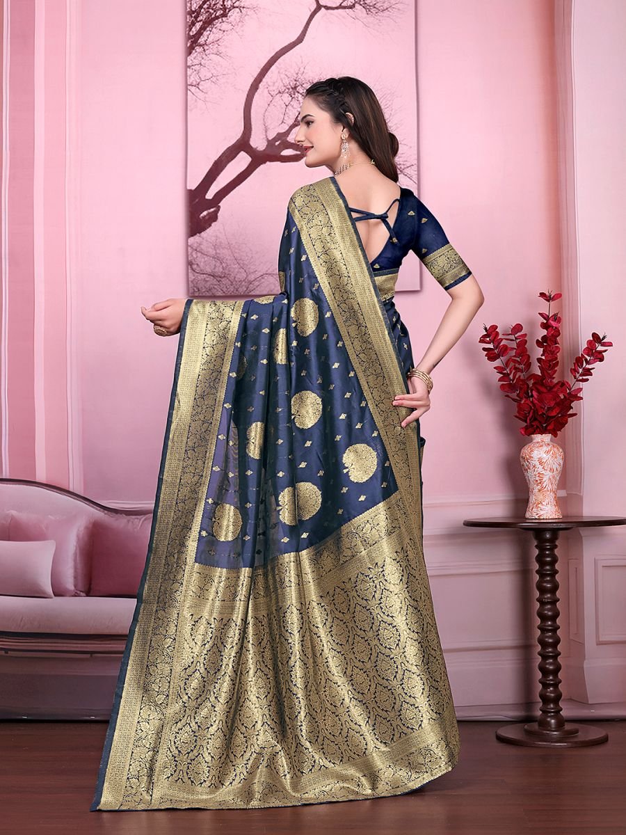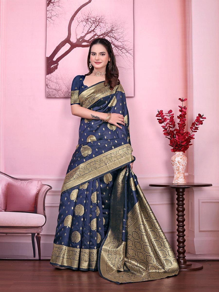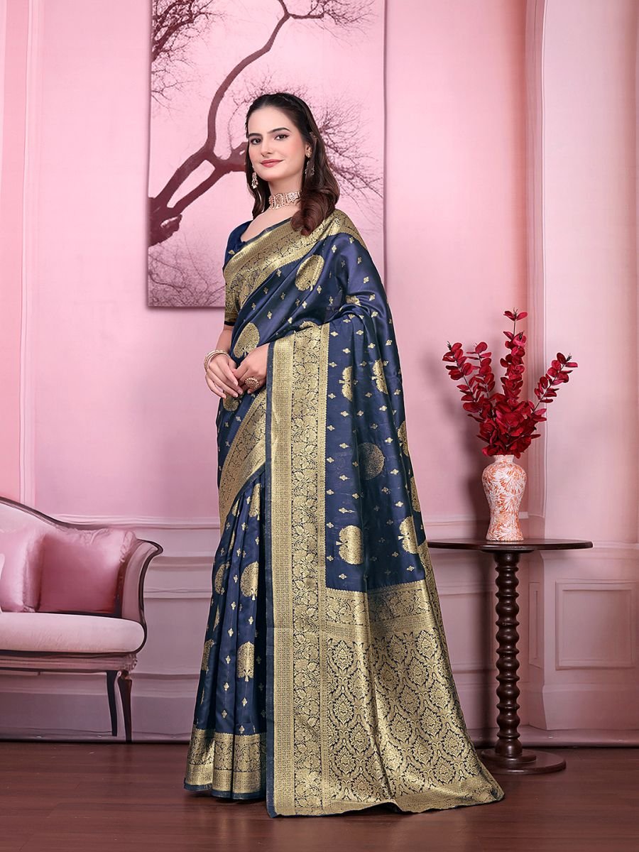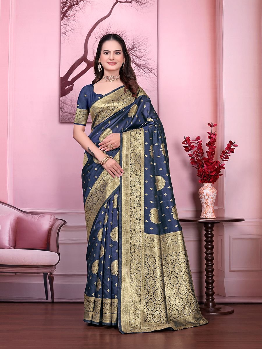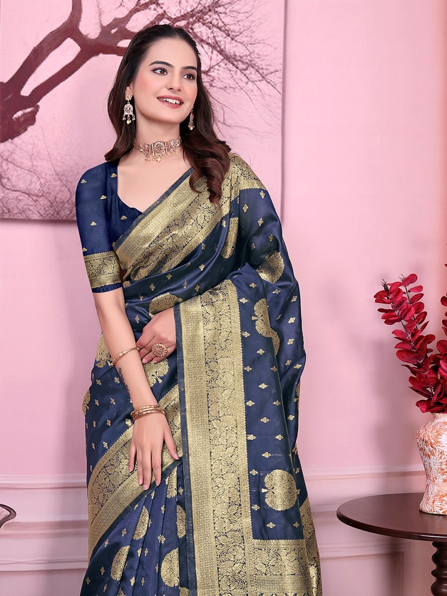 Fabric: Banarasi Jacquard Work/Design: Woven Floral Print Saree Length: 5.5 Meters Blouse Length: 0.8 Meter (Unstitched) Style: Party Wear / Festive Wear Occasion: Weddings, Receptions, Traditional Functions, Parties Blouse Type: Contrast/Matching unstitched blouse piece included Care Instruction: Dry clean recommended for long-lasting shine Step into timeless elegance with this Banarasi Jacquard Floral Print Saree, designed to make every occasion special. Crafted from rich jacquard fabric, the saree features intricate floral patterns that exude a traditional yet stylish charm. Its smooth drape and glossy finish add a royal touch, making it perfect for weddings, receptions, festive gatherings, and parties.