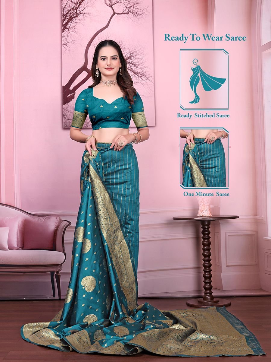 Floral Print Ready to Wear Banarasi Jacquard Party Saree with Unstitched Blouse