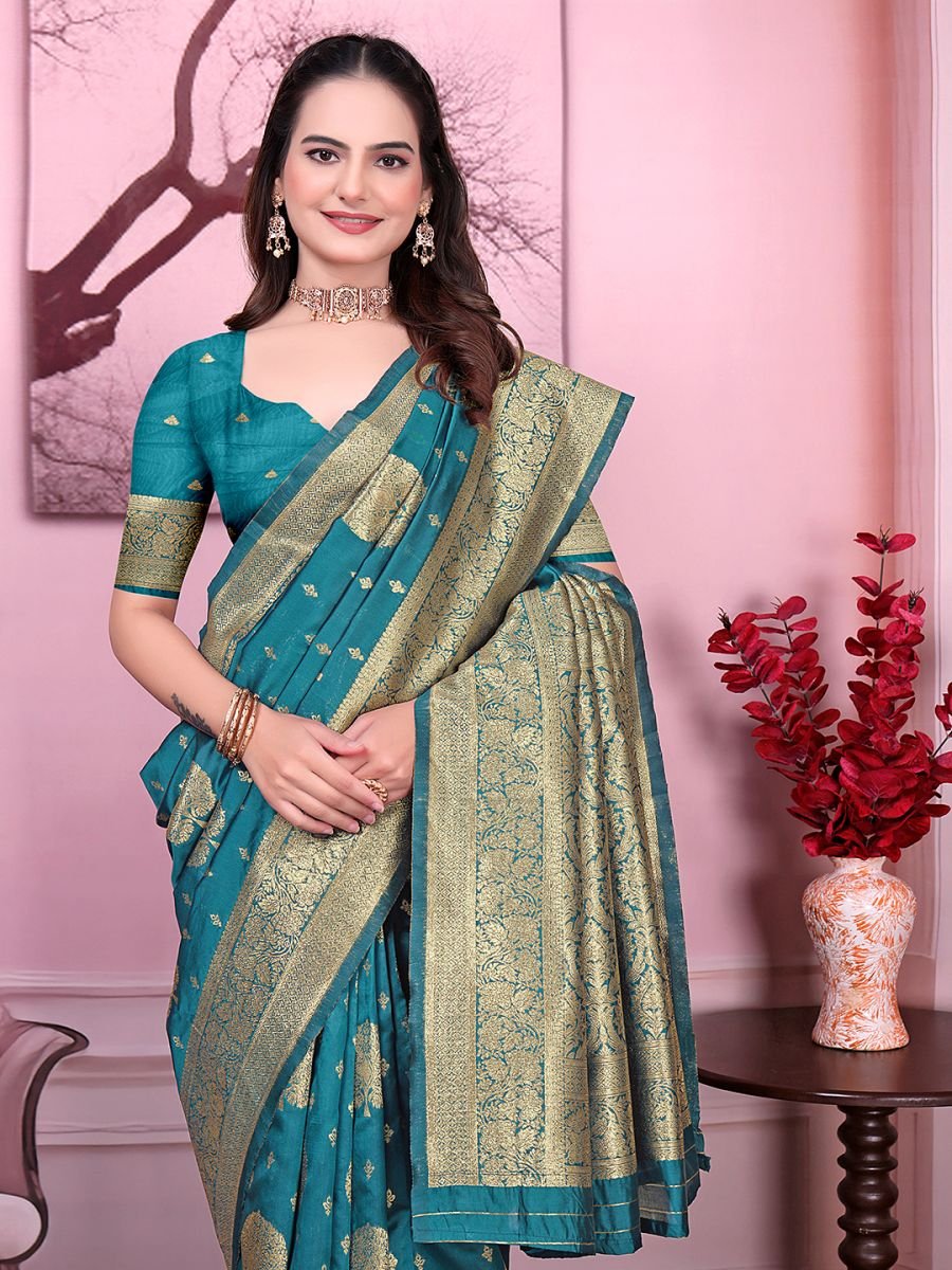 Fabric: Banarasi Jacquard Work/Design: Woven Floral Print Saree Length: 5.5 Meters Blouse Length: 0.8 Meter (Unstitched) Style: Party Wear / Festive Wear Occasion: Weddings, Receptions, Traditional Functions, Parties Blouse Type: Contrast/Matching unstitched blouse piece included Care Instruction: Dry clean recommended for long-lasting shine Step into timeless elegance with this Banarasi Jacquard Floral Print Saree, designed to make every occasion special. Crafted from rich jacquard fabric, the saree features intricate floral patterns that exude a traditional yet stylish charm. Its smooth drape and glossy finish add a royal touch, making it perfect for weddings, receptions, festive gatherings, and parties.