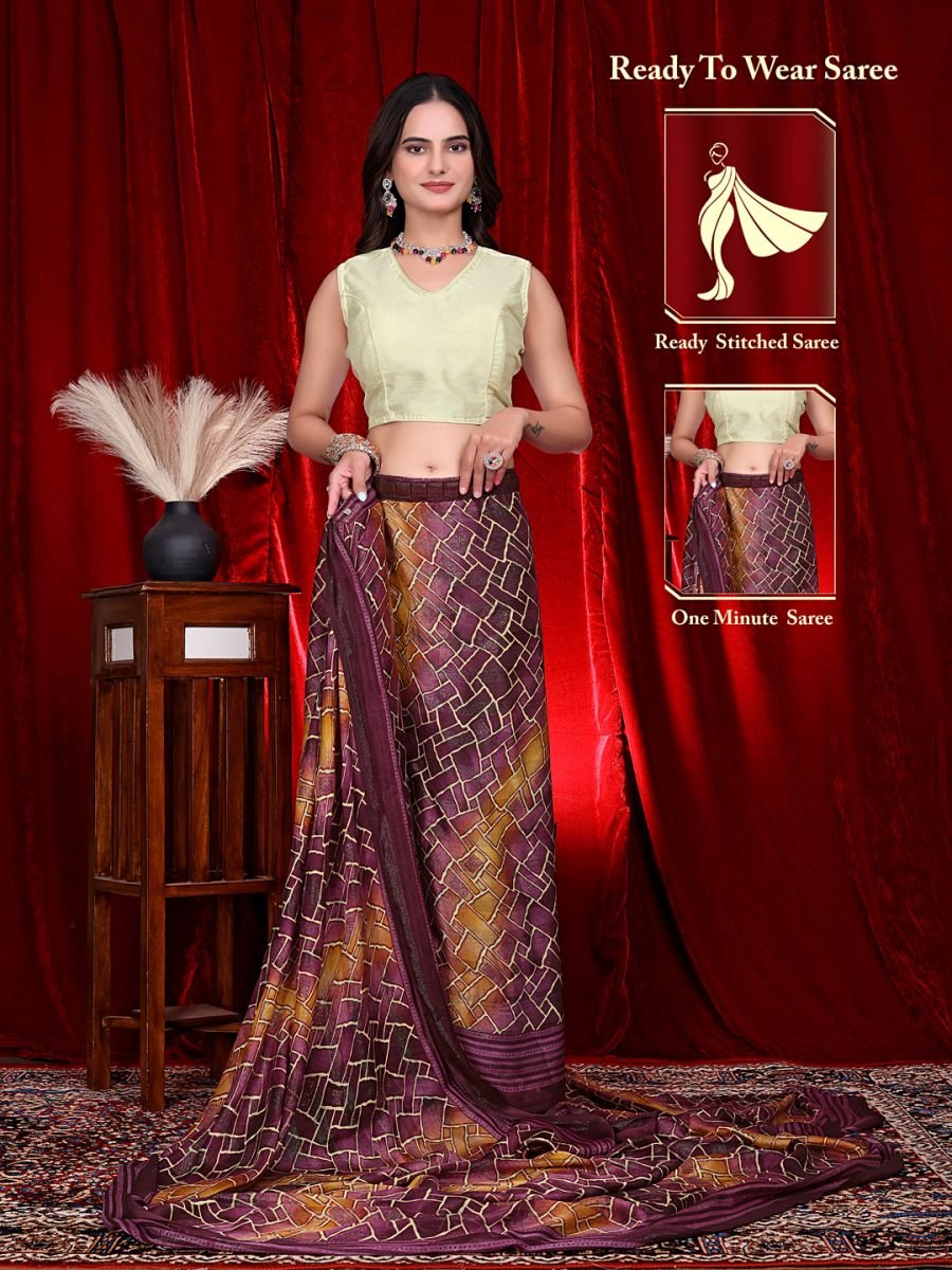 Heavy Chiffon Color Block Printed Ready to Wear Saree