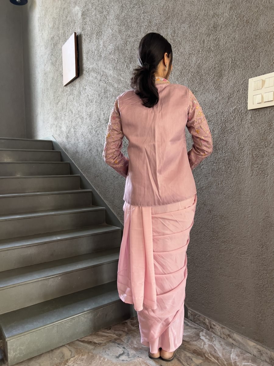 Saree: Free Size (XL) - Adjustable up to a waist of 40 inches with the help of a tailor. Fully Stitched Blouse - Free Size (XL) - Adjustable up to a Chest 40 inch with the help of a tailor. Fully Stitched Jacket - Free Size (XL) - Adjustable up to Chest 40 inches with the help of a tailor. Fully Stitched Package Contains - Saree and Blouse Saree Fabric: Heavy Chinon Saree Work: Embroidery Cording Work Jacket Fabric: Heavy Banglori Jacket Work: Embroidery Cording Work Blouse Fabric: Heavy Banglori Blouse Work: Embroidery Cording Work This stunning saree set is designed with intricate embroidery cording work, giving it a luxurious and sophisticated appearance. The heavy Chinon fabric of the saree, paired with the rich Banglori jacket and blouse, creates an elegant ensemble for any formal occasion. When to Wear This beautiful saree set is ideal for formal occasions such as weddings, evening parties, and festive events. The intricate embroidery work makes it a perfect choice for those seeking a blend of tradition and modern elegance. Whether attending a grand celebration or an intimate gathering, this outfit will ensure you stand out.