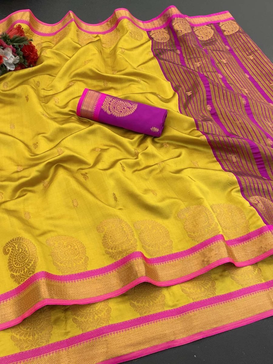 Fabric Type: Jacquard Pure Silk Included Blouse Piece: Unstitched blouse fabric (0.8 meters) for personalized tailoring Saree Length: 5.5 meters—perfect drape length for most body types Comfort All Day: Breathable, soft fabric suitable for long hours of wear Versatile Occasion Wear: Ideal for parties, festive celebrations, office functions, daily wear, and evening events Color Disclaimer: Actual product color may slightly vary due to lighting and display settings Product Description: Premium Jacquard Pure Silk fabric. Designed for the modern woman who values both tradition and convenience, making it effortless to wear and perfect for those who are always on the go. featuring an intricate woven pattern and rich, regal texture