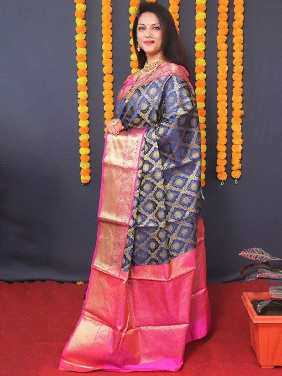 Fabric: Premium Kanjivaram Silk Design: Rich woven pallu with traditional patterns Saree Length: 5.5 meters Blouse Length: 0.8 meters (Unstitched) Occasion: Wedding, Party, Festive, Traditional, Cultural Events Style: Classic Indian Ethnic Wear Care Instructions: Dry clean recommended for longevity The saree comes with a 5.5-meter length ensuring a perfect drape, and an 0.8-meter unstitched blouse piece for a customized fit. Designed to reflect sophistication, the rich woven pallu enhances the overall grandeur, while the smooth silk body ensures comfort throughout the day.