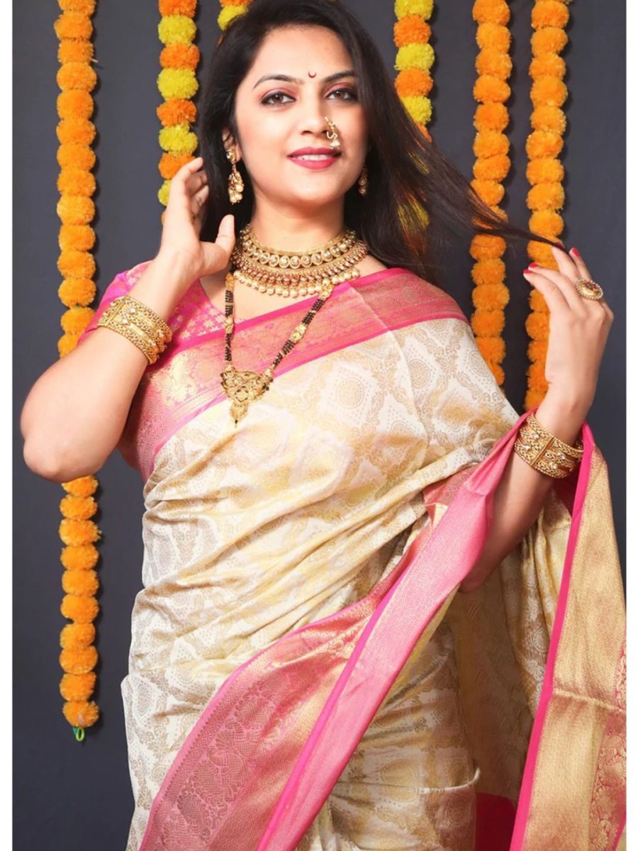 Fabric: Premium Kanjivaram Silk Design: Rich woven pallu with traditional patterns Saree Length: 5.5 meters Blouse Length: 0.8 meters (Unstitched) Occasion: Wedding, Party, Festive, Traditional, Cultural Events Style: Classic Indian Ethnic Wear Care Instructions: Dry clean recommended for longevity The saree comes with a 5.5-meter length ensuring a perfect drape, and an 0.8-meter unstitched blouse piece for a customized fit. Designed to reflect sophistication, the rich woven pallu enhances the overall grandeur, while the smooth silk body ensures comfort throughout the day.