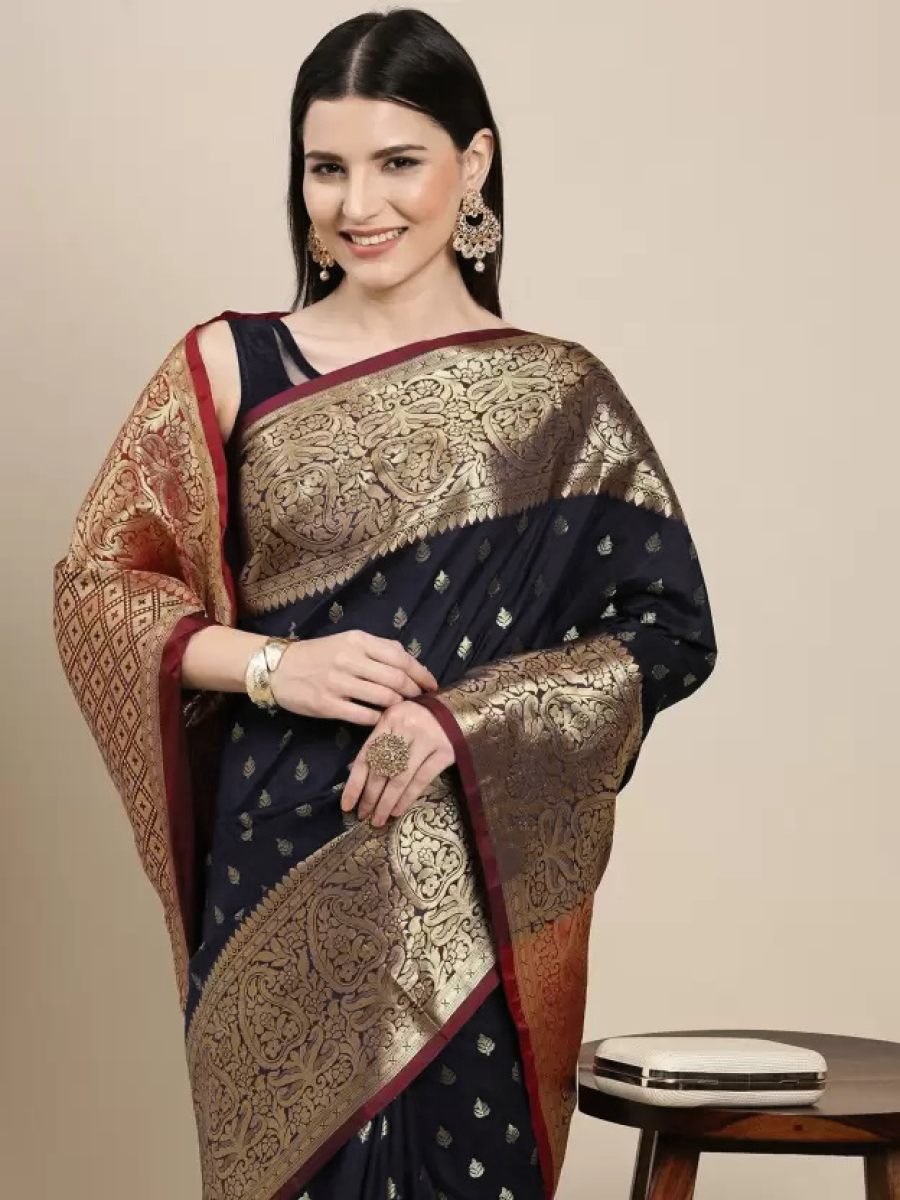 DESCRIPTION: A Kanjivaram Jacquard Saree Blends The Traditional Craftsmanship Of Kanjivaram Silk With The Modern Aesthetic Of Jacquard Weaving, Saree Specifications: Fabric: Jacquard, Work: Copper Zari Type: Kanjivaram, BLOUSE SPECIFICATION: Fabric: Silk, Work Type: Woven, Stitching Type: Unstitched, SET CONTAIN: Saree With Blouse Piece Saree : 5.50Mtr, Blouse Piece: 0.80Mtr, LEGAL DESCRIPTION: Product Care Instructions: Dry Clean Only, There Might Be Minor Color Variation Between Actual Product And Image Shown On Screen Due To Lighting On The Photography