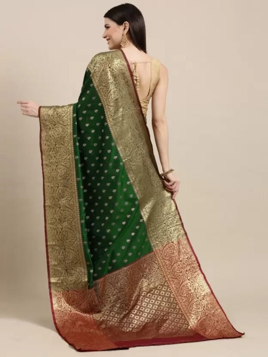 DESCRIPTION: A Kanjivaram Jacquard Saree Blends The Traditional Craftsmanship Of Kanjivaram Silk With The Modern Aesthetic Of Jacquard Weaving, SAREES SPECIFICATION: Fabric: Jacquard, Work: Copper Zari Type: Kanjivaram, BLOUSE SPECIFICATION: Fabric: Silk, Work Type: Woven, Stitching Type: Unstitched, SET CONTAIN: Saree With Blouse Piece Saree : 5.50Mtr, Blouse Piece: 0.80Mtr, LEGAL DESCRIPTION: Product Care Instructions: Dry Clean Only, There Might Be Minor Color Variation Between Actual Product And Image Shown On Screen Due To Lighting On The Photography