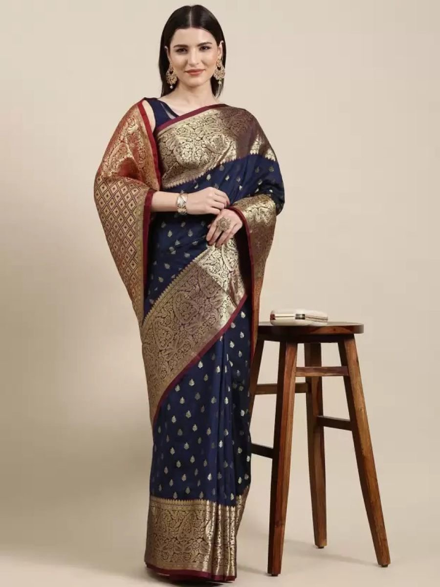 DESCRIPTION: A Kanjivaram Jacquard Saree Blends The Traditional Craftsmanship Of Kanjivaram Silk With The Modern Aesthetic Of Jacquard Weaving, Saree Specifications: Fabric: Jacquard, Work: Copper Zari Type: Kanjivaram, BLOUSE SPECIFICATION: Fabric: Silk, Work Type: Woven, Stitching Type: Unstitched, SET CONTAIN: Saree With Blouse Piece Saree : 5.50Mtr, Blouse Piece: 0.80Mtr, LEGAL DESCRIPTION: Product Care Instructions: Dry Clean Only, There Might Be Minor Color Variation Between Actual Product And Image Shown On Screen Due To Lighting On The Photography