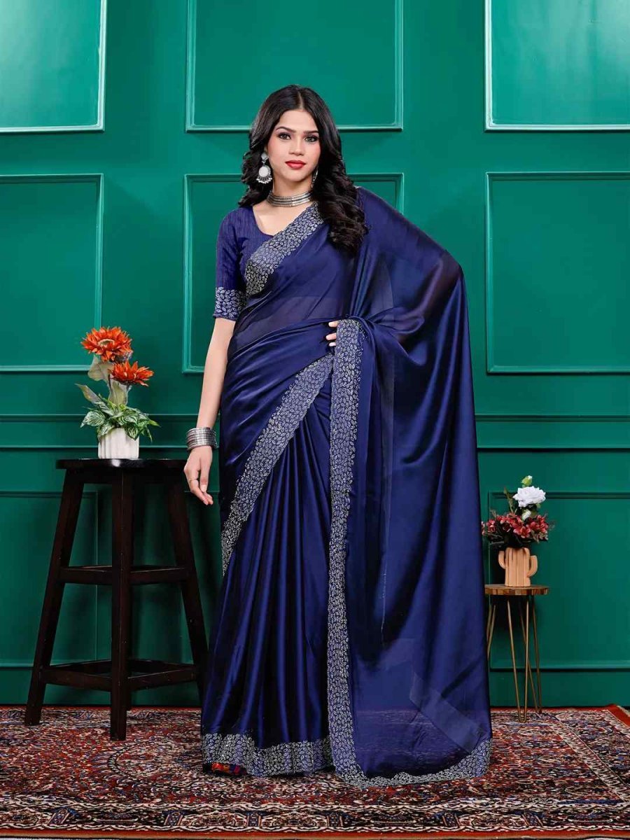 Fabric: Premium Silk Work/Design: Swarovski Diamond Lace Border Work Saree Length: 5.5 meters Blouse Piece: 0.8 meters (Unstitched) Style: Designer Party Wear / Festive Saree / Wedding Saree Occasion: Weddings, Parties, Receptions, Festive Celebrations Special Feature: Elegant Swarovski diamond lace with glossy silk finish Care Instructions: Dry clean only Elevate your ethnic wardrobe with our Luxury Silk Swarovski Diamond Lace Work Saree, a timeless blend of elegance and sophistication. Crafted from premium quality silk, this saree drapes effortlessly, giving you a graceful and royal look for every occasion. The delicate Swarovski diamond lace detailing along the border adds a sparkling charm, making it the perfect choice for weddings, parties, festive celebrations, and special evenings.